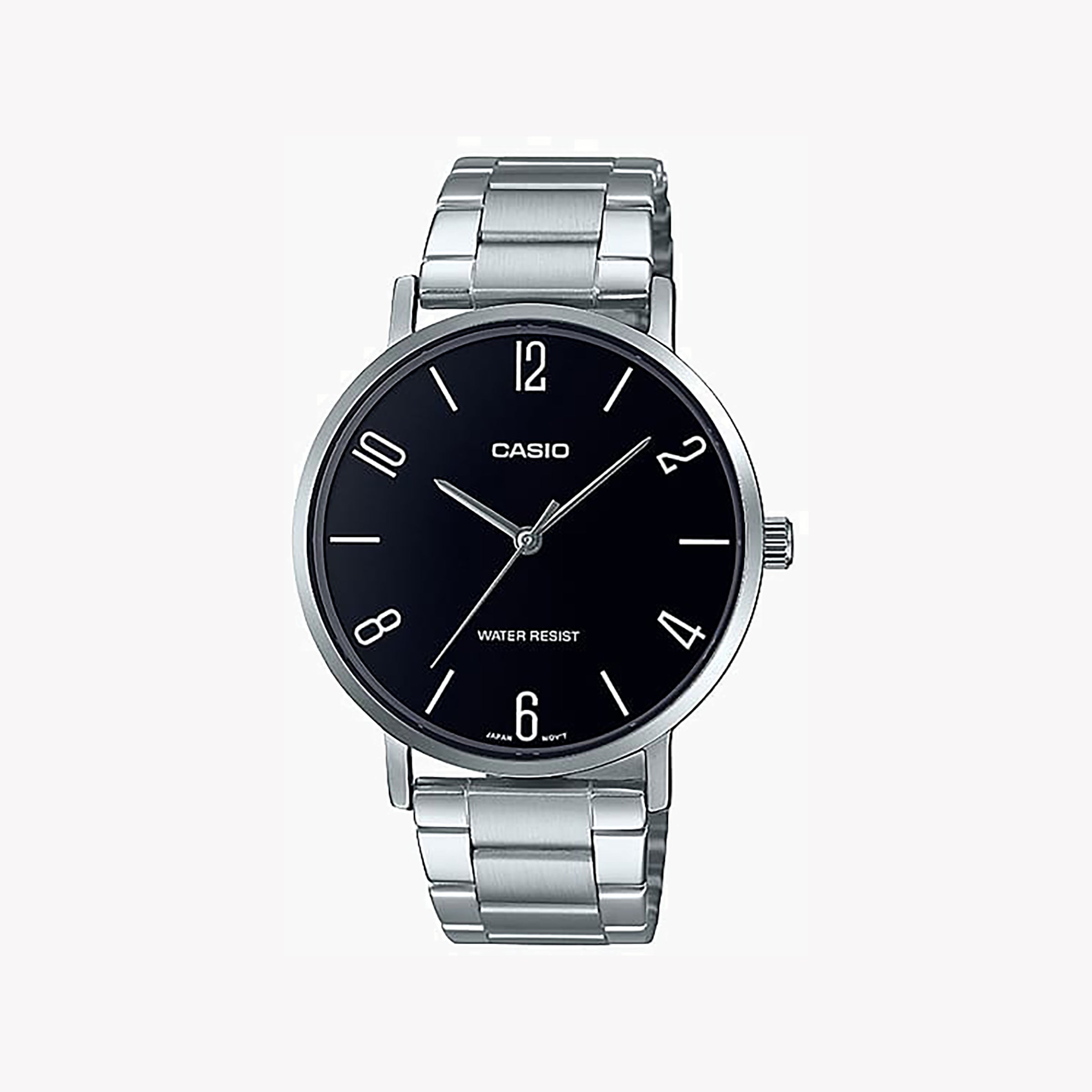 CASIO MTP-VT01D-1B2UDF – SPORTLICH-ELEGANTE HERRENUHR MIT STILVOLLEM SCHWARZEM ZIFFERBLATT UND EDELSTAHLBAND
