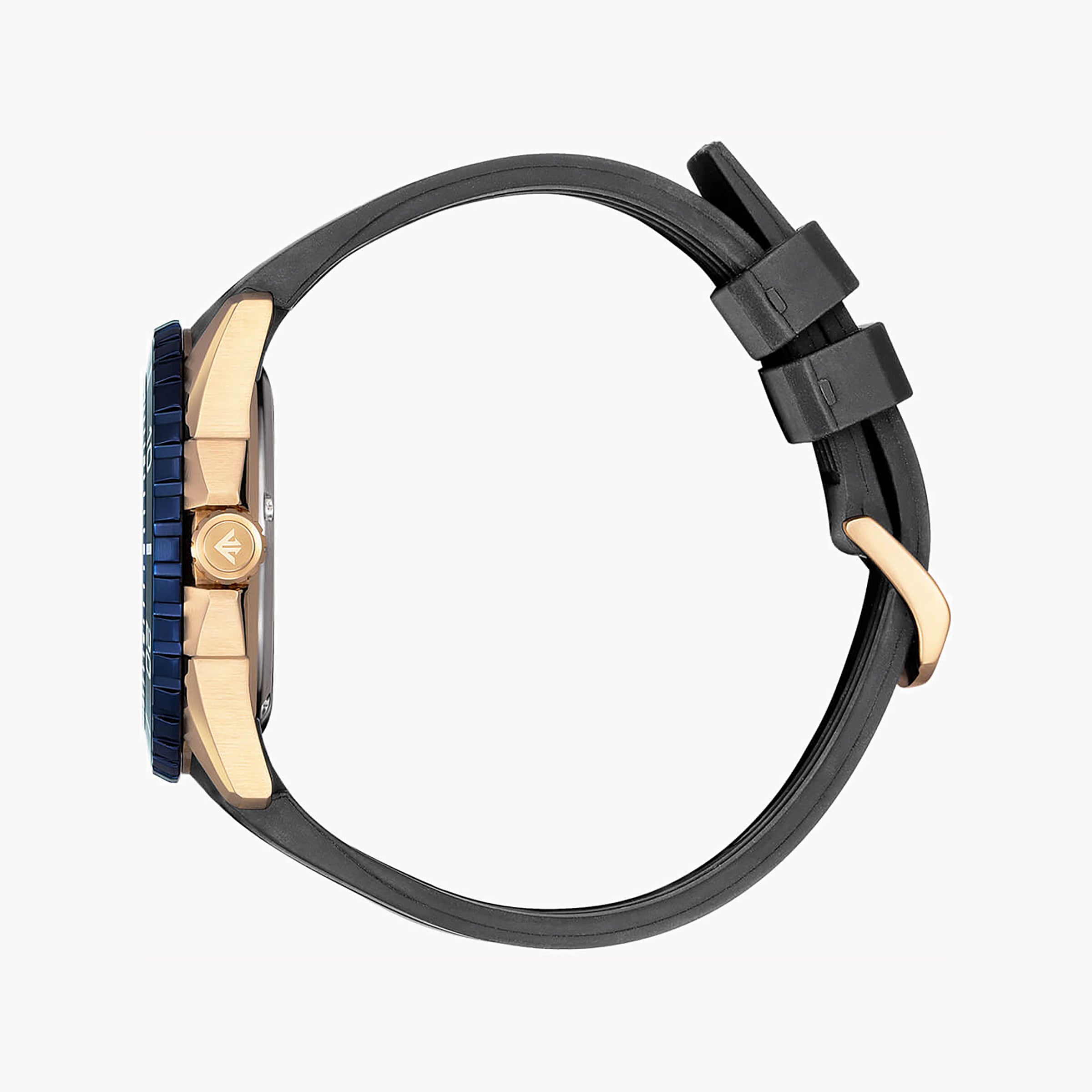 - Auffällige Ästhetik: Die Uhr verfügt über ein markantes 46,5 mm Gehäuse aus Edelstahl in strahlendem Gold, perfekt kombiniert mit einem eleganten schwarzen Polyurethanarmband, das jedem Outfit eine sportliche Note verleiht.