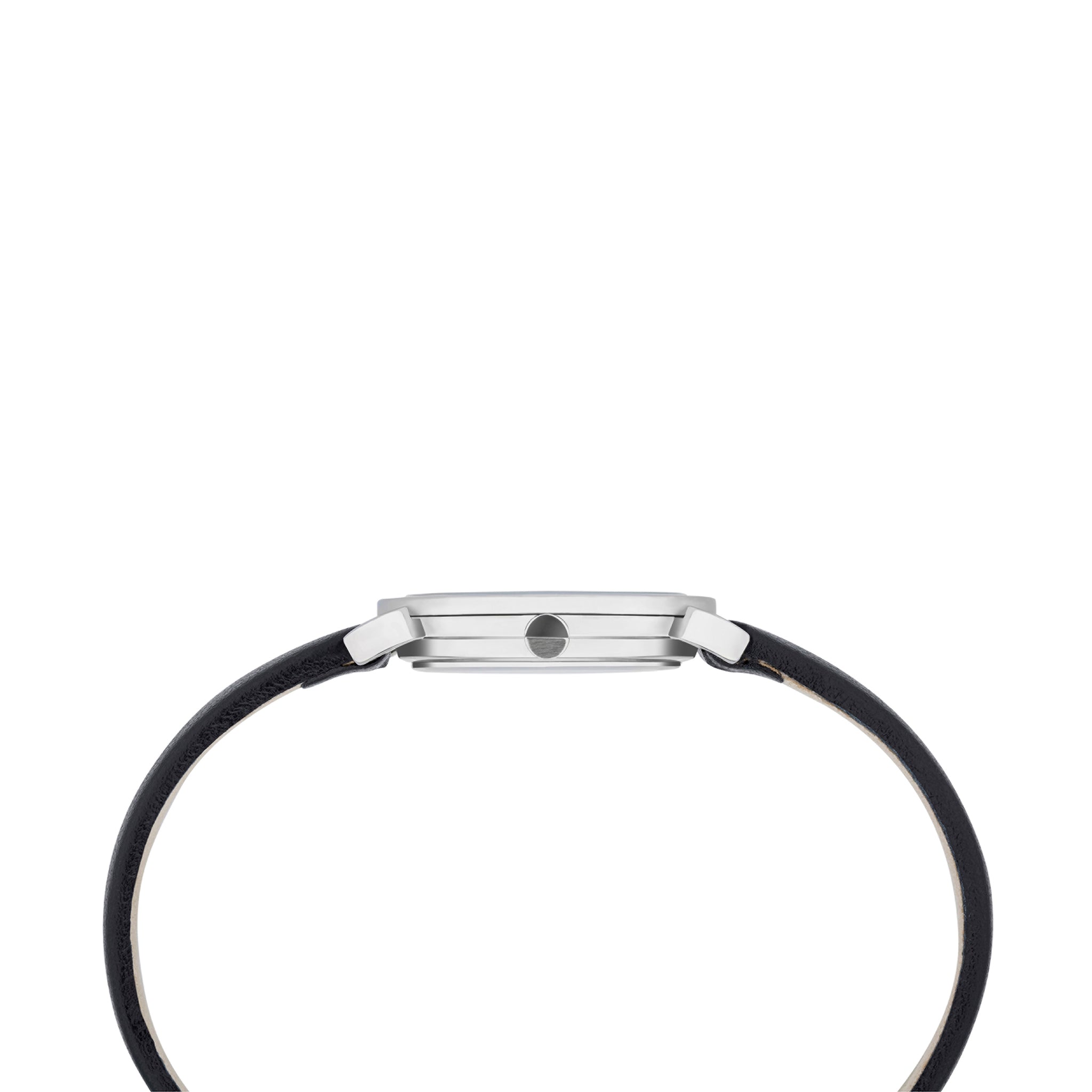 Eine stilvolle und luxuriös aussehende Uhr, die Pierre Cardin Uhr mit einem runden Gehäuse aus Edelstahl in Silber verfügt über ein schwarzes Lederarmband und ein silbernes Zifferblatt. Mit einem Gehäusedurchmesser von 27 mm wird sie eine großartige Ergänzung zu Ihrem Outfit sein.