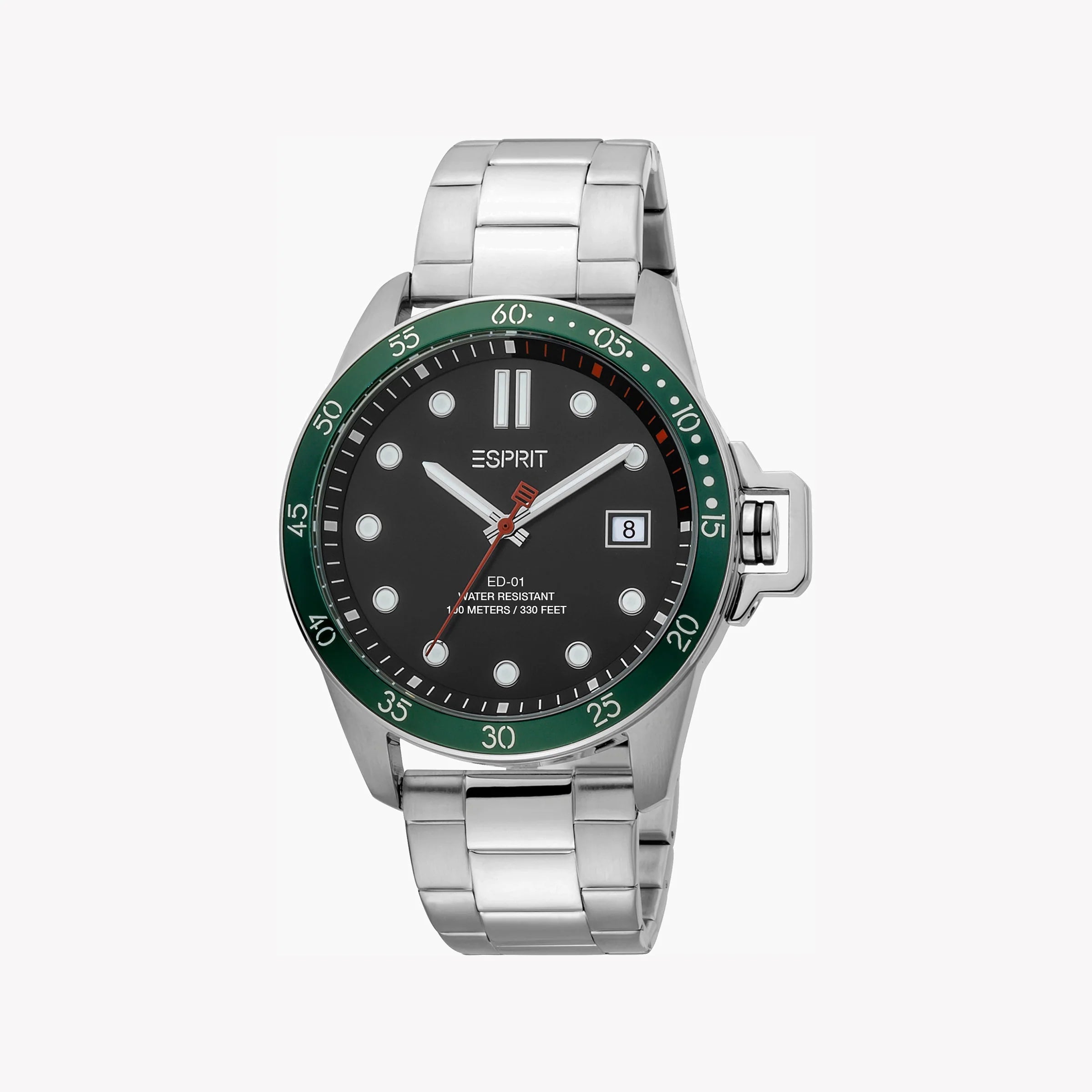 ESPRIT EDELSTAHL HERRENUHR – ZEITLOSES SCHWARZES ZIFFERBLATT & SILBERNES BAND ELEGANZ