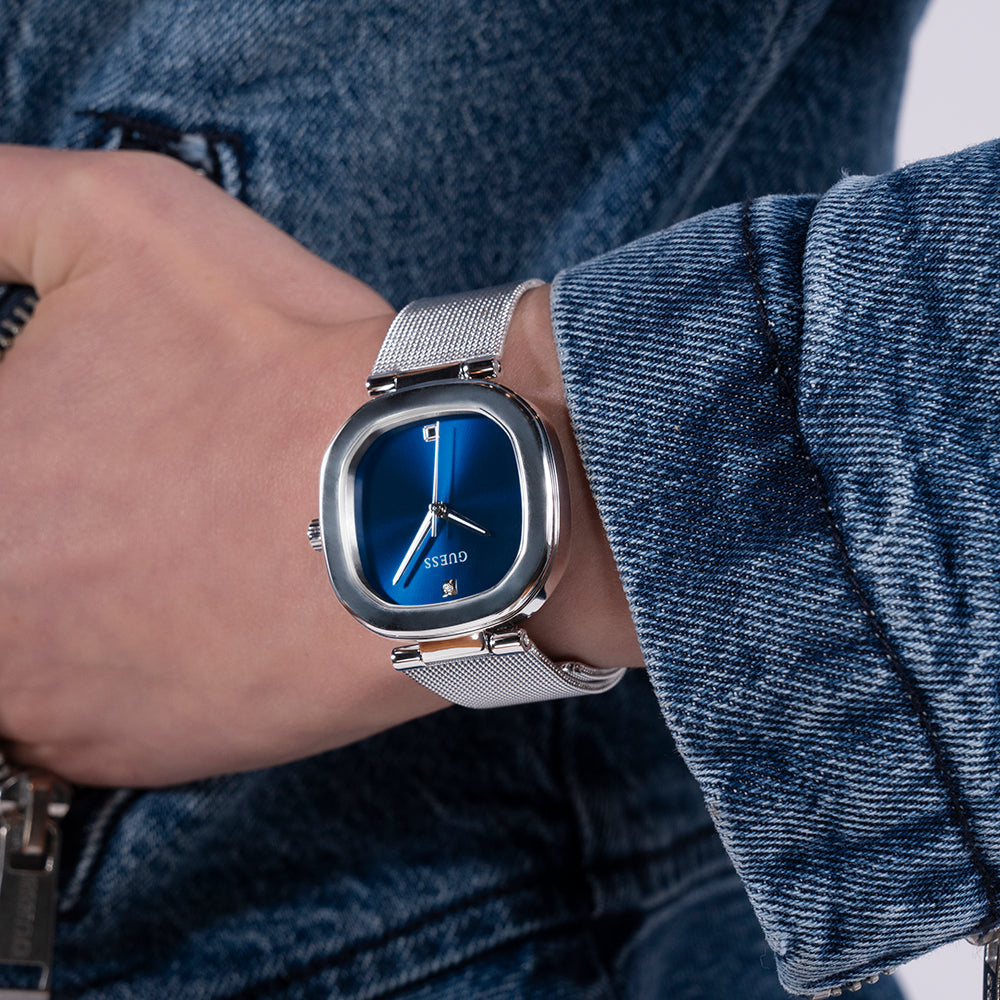 GUESS GW0768L1 SILVER CHARM – ELEGANTER DAMENUHR MIT BLAUEM ZIFFERBLATT UND MESH-BAND