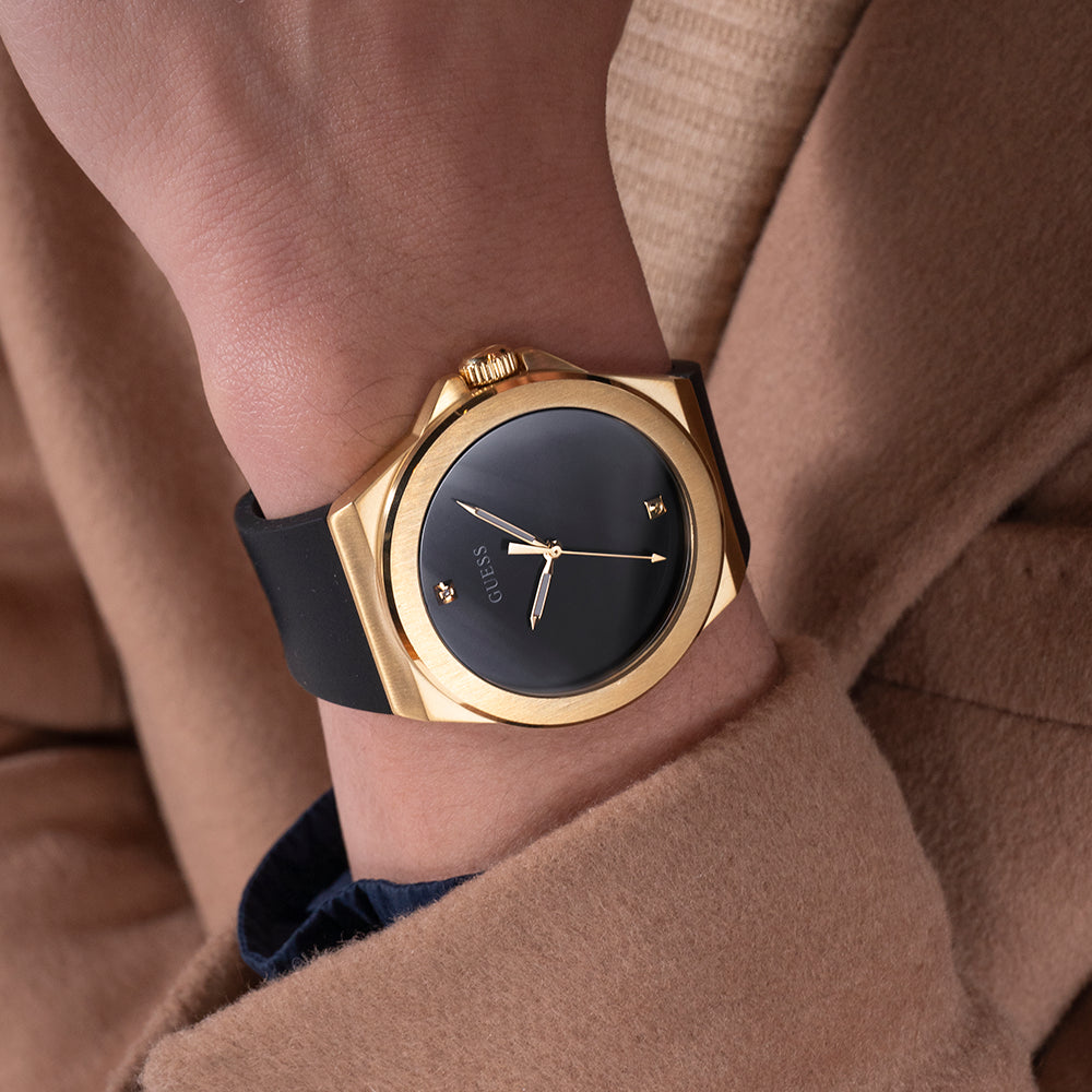 GUESS GW0790G1 BOLD SPHISTICATION – Damenuhr aus Silikon in Gold und Schwarz