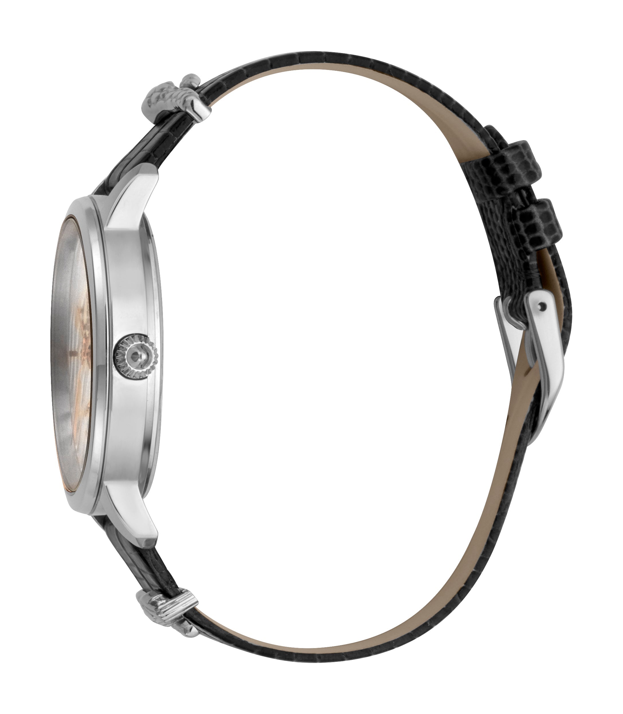 JUST CAVALLI Damenuhr mit silbernem Edelstahlgehäuse und schwarzem Lederarmband