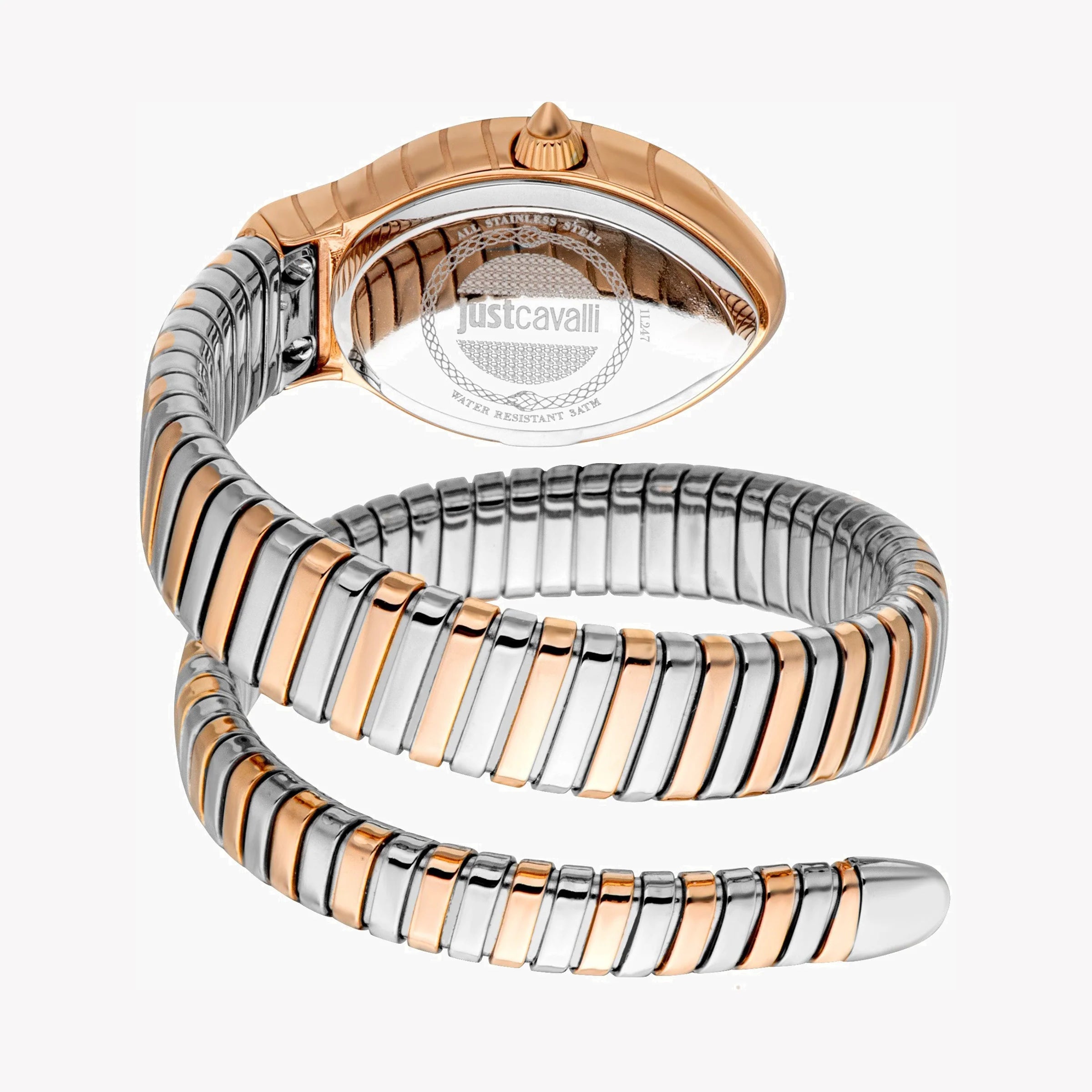 JUST CAVALLI Damenuhr mit roségoldenem Edelstahlgehäuse und silber- und roségoldenem Edelstahlarmband