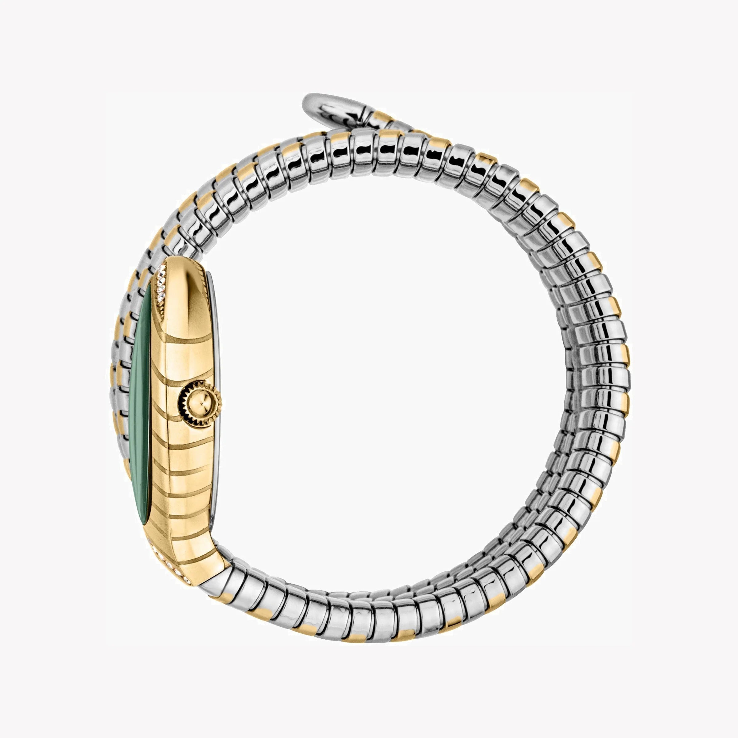 JUST CAVALLI Damenuhr mit goldenem Edelstahlgehäuse und silber-goldenem Edelstahlarmband
