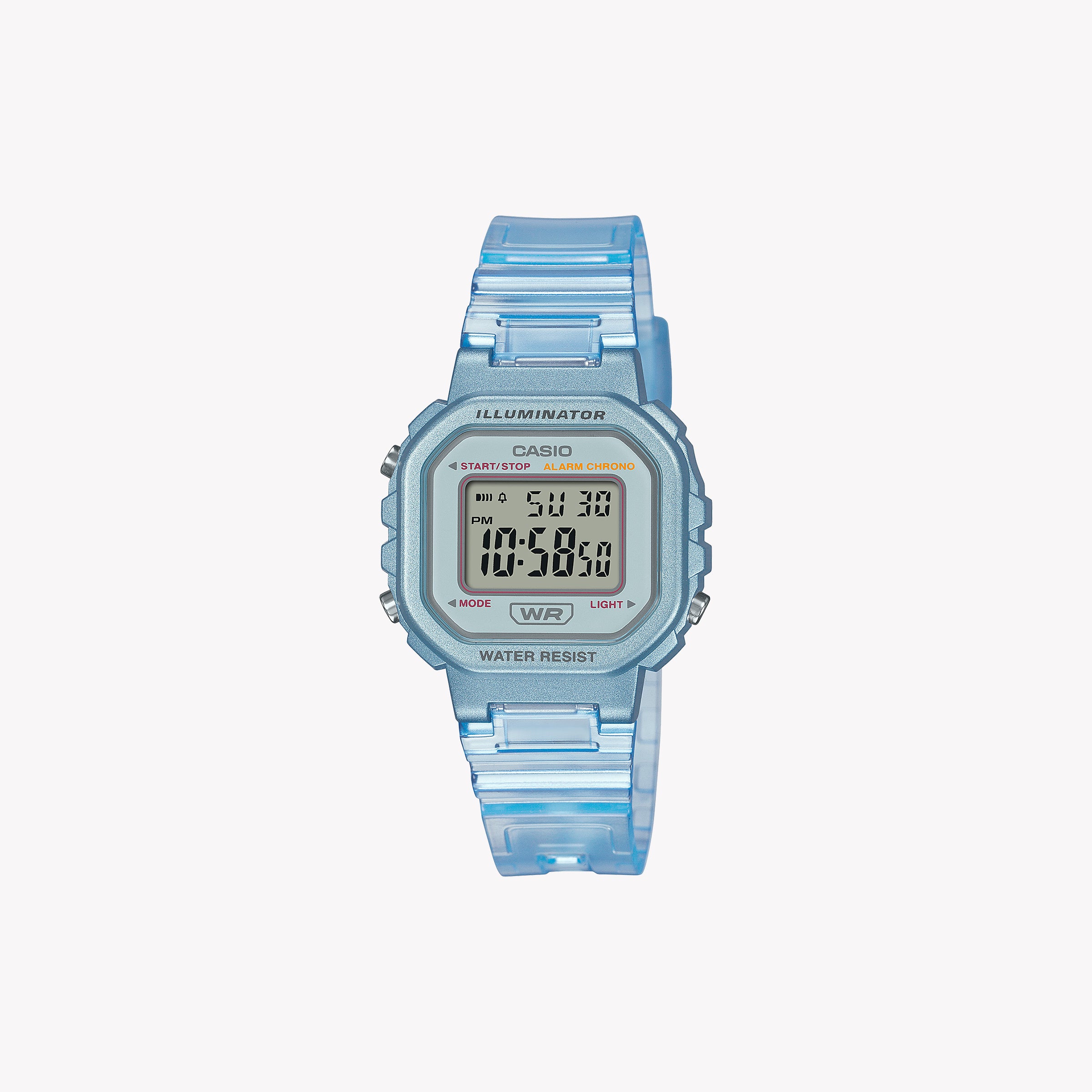 - Stilvolle Ästhetik: Mit einem auffälligen blauen Harzgehäuse und einem passenden blauen Kunststoffband wurde die LA-20WHS-2AEF entworfen, um jedes Outfit zu ergänzen und gleichzeitig ein mutiges Statement zu setzen.