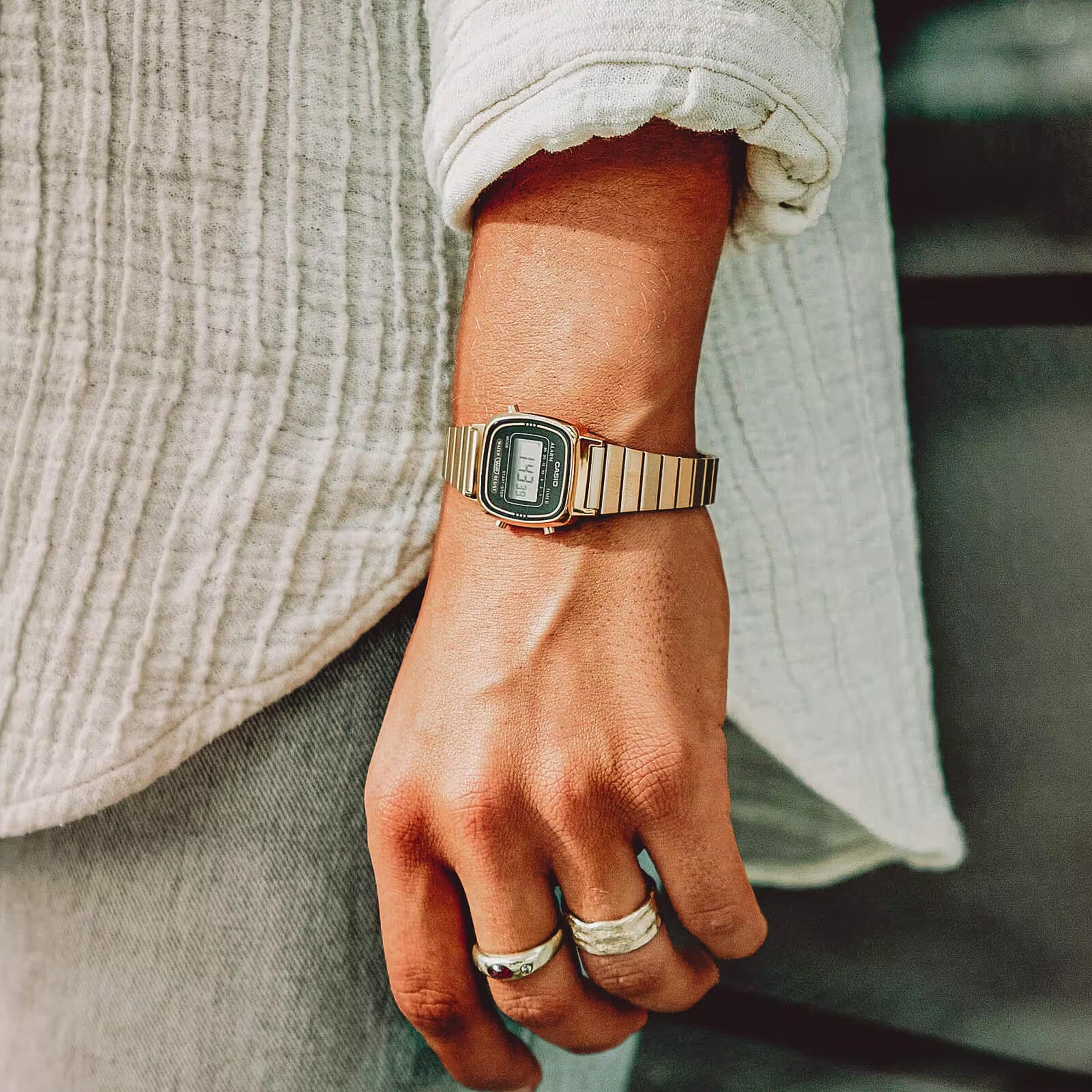 CASIO LA670WEGA-1EF ELEGANT GOLD – ZEITLOSER DIGITAL CHARM Damenuhr mit goldenem Edelstahlband und schicker Digitalanzeige