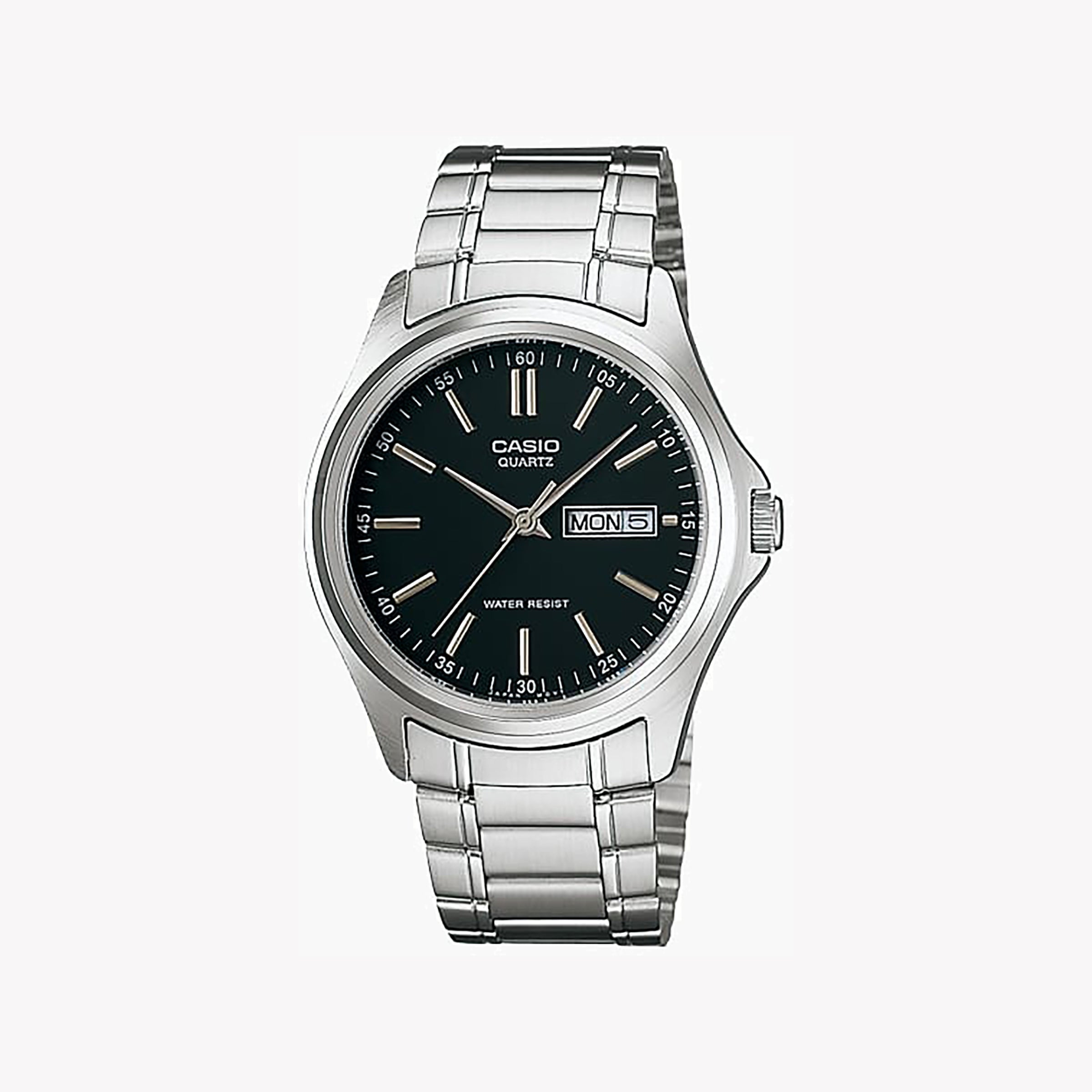 CASIO MTP-1239D-1A mutige Eleganz – zeitlose, leistungsstarke Unisex-Armbanduhr mit Edelstahlarmband und auffälligem schwarzem Zifferblatt