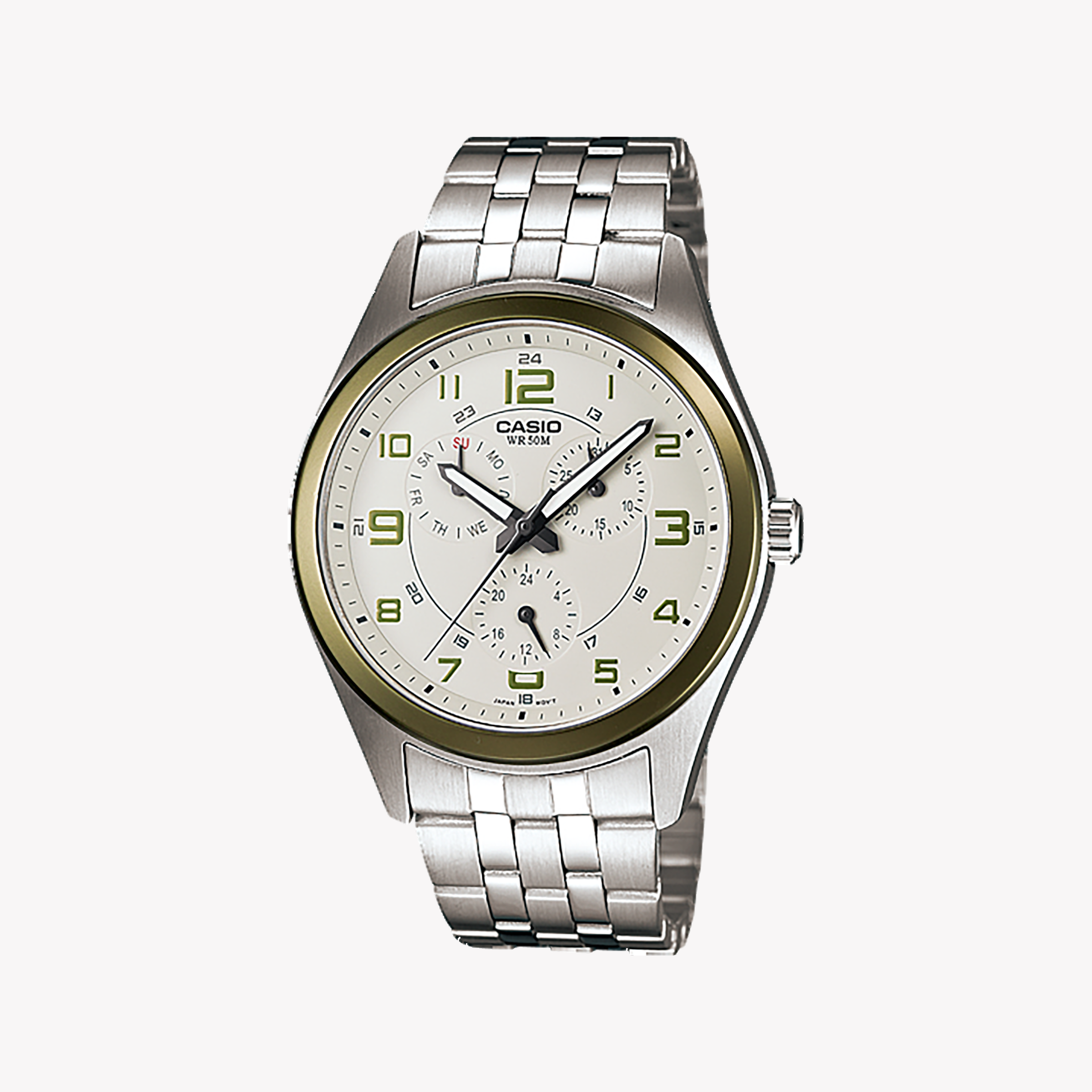 CASIO MTP-1352D-8B2VD – SPORTLICHE ELEGANZ HERRENUHR mit Edelstahlband und weißem Zifferblatt