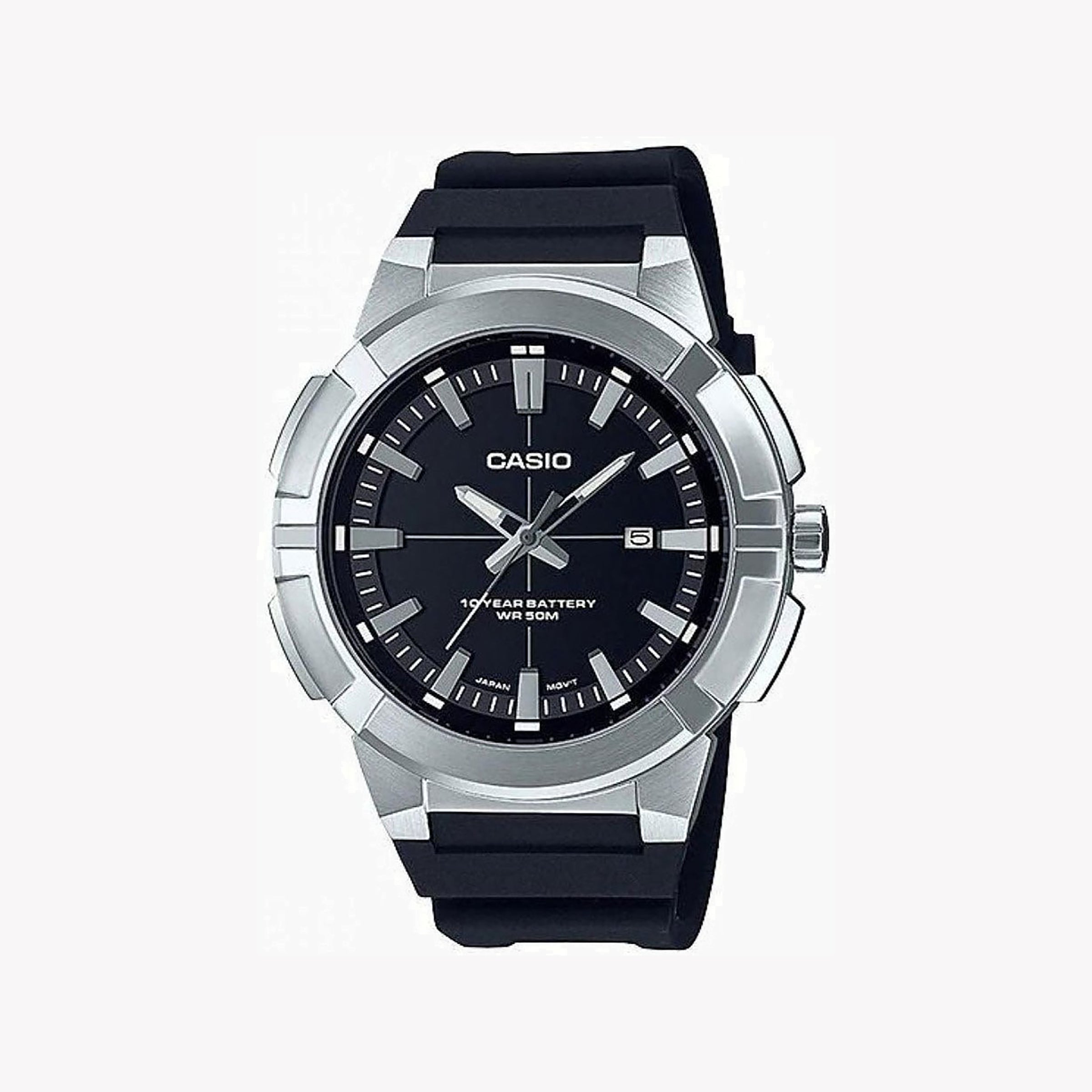 CASIO MTP-E172-1AVDF SPORTLICHE ZUVERLÄSSIGKEIT – HERRENUHR AUS EDELSTAHL MIT SCHWARZEM ZIFFERBLATT UND HARZBAND
