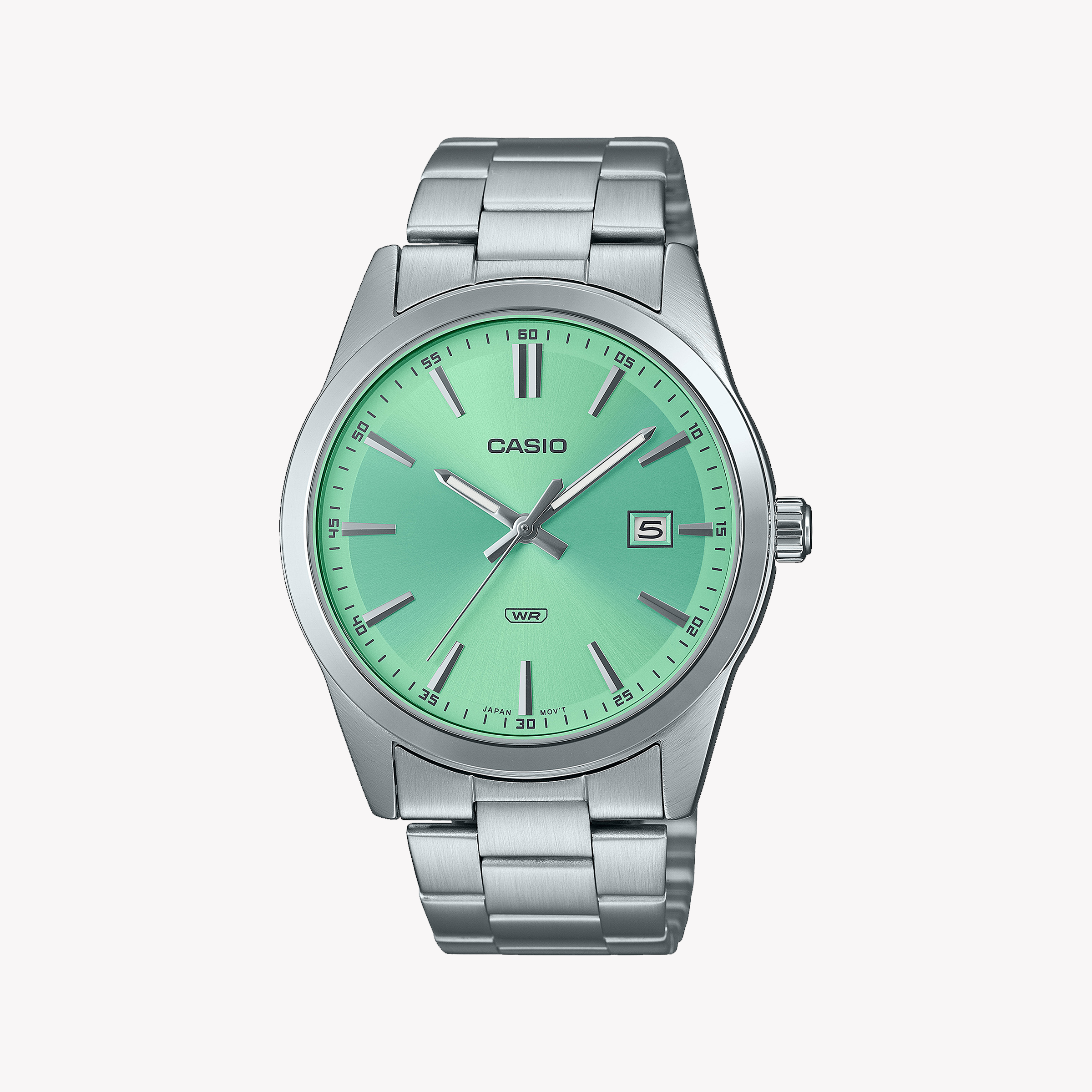 CASIO MTP-VD03D-3A2 KRÄFTIGES GRÜNES ZIFFERBLATT – STILVOLLE HERRENUHR AUS EDELSTAHL