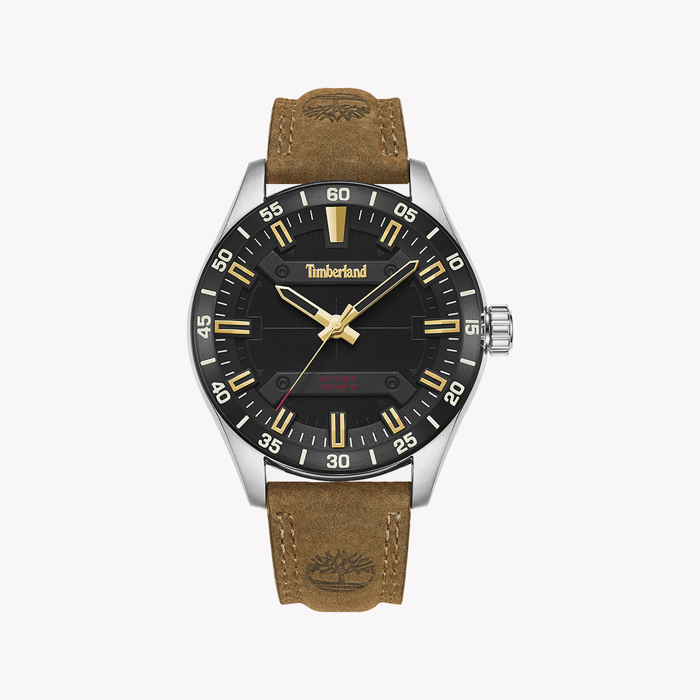 TIMBERLAND TDWGA2201201 RUGGED SPIRIT – ABENTEUERBEREITIGE HERRENUHR mit braunem Lederarmband und auffälligem schwarzem Zifferblatt