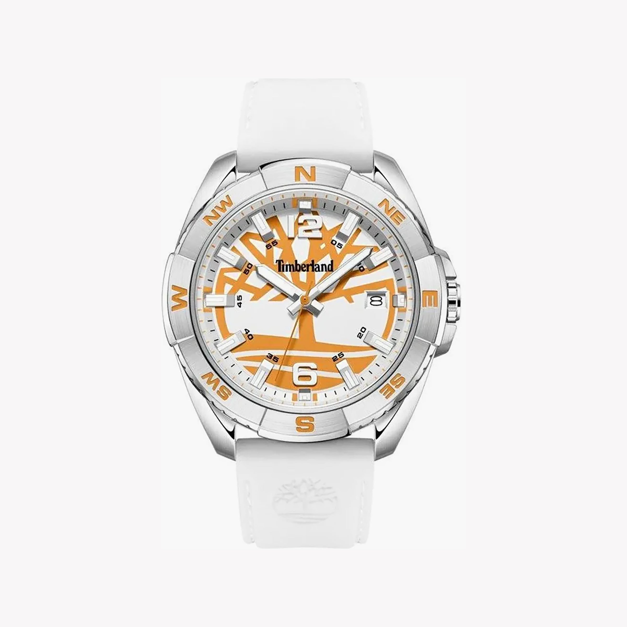 TIMBERLAND TDWGN2202105 ABENTEUERBEREIT – SILBERNE HERRENUHR MIT WEISSEM SILIKONBAND UND ORANGEM ZIFFERBLATT