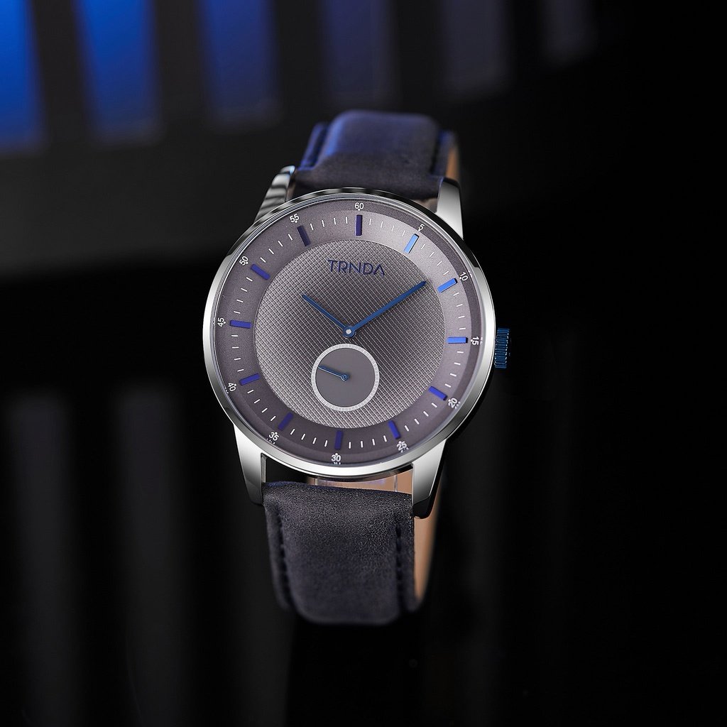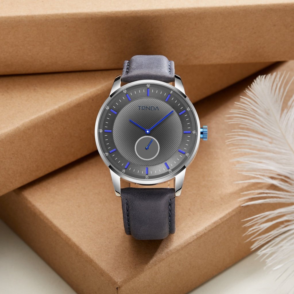 TRNDA HERREN-UHR AUS EDELSTAHL – ELEGANTE UHR AUS BLAUEM LEDER UND VERFALLENDEM ZIFFERBLATT