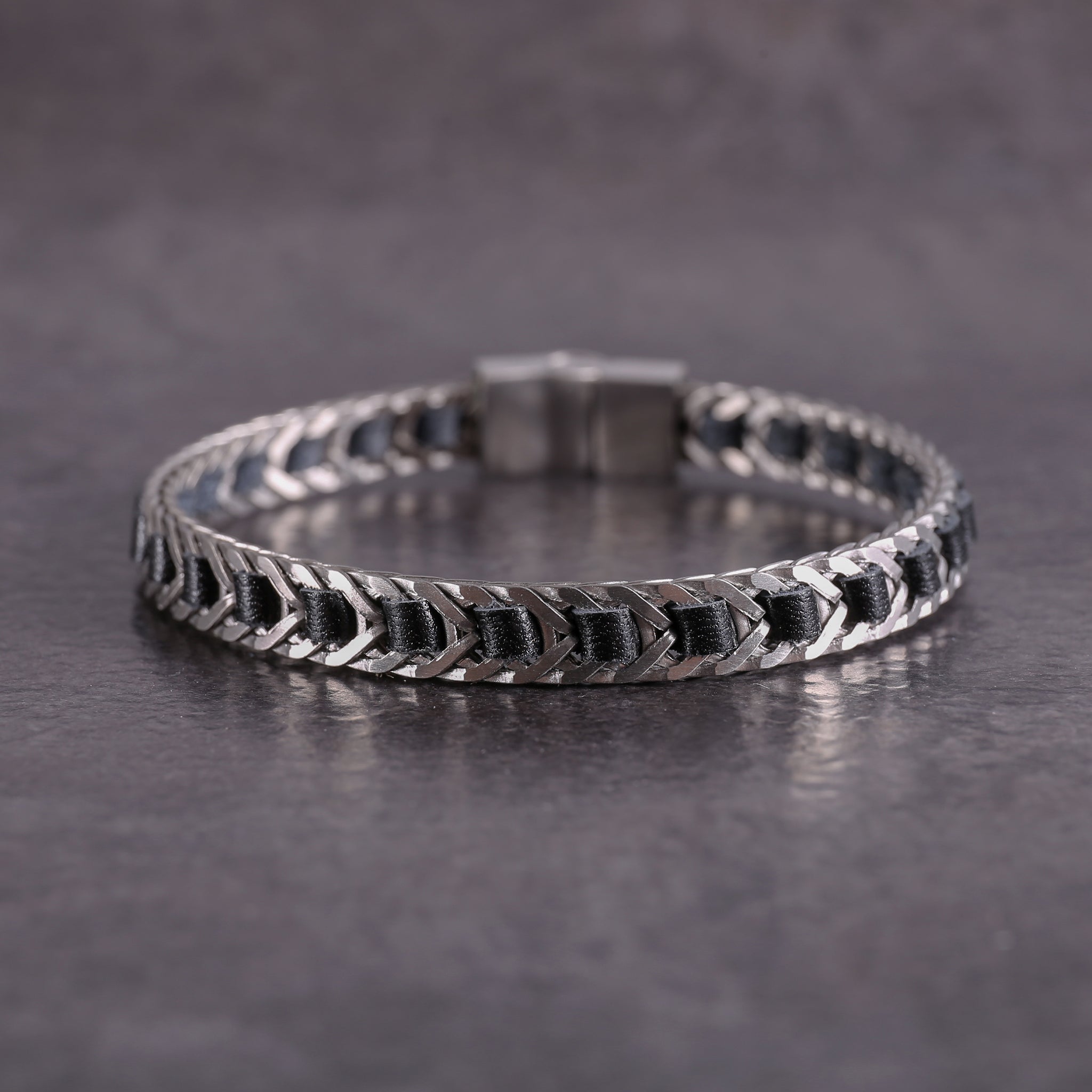 Zink Men's Black & Silver Leather & Stainless Steel Bracelet | Zjbc0373