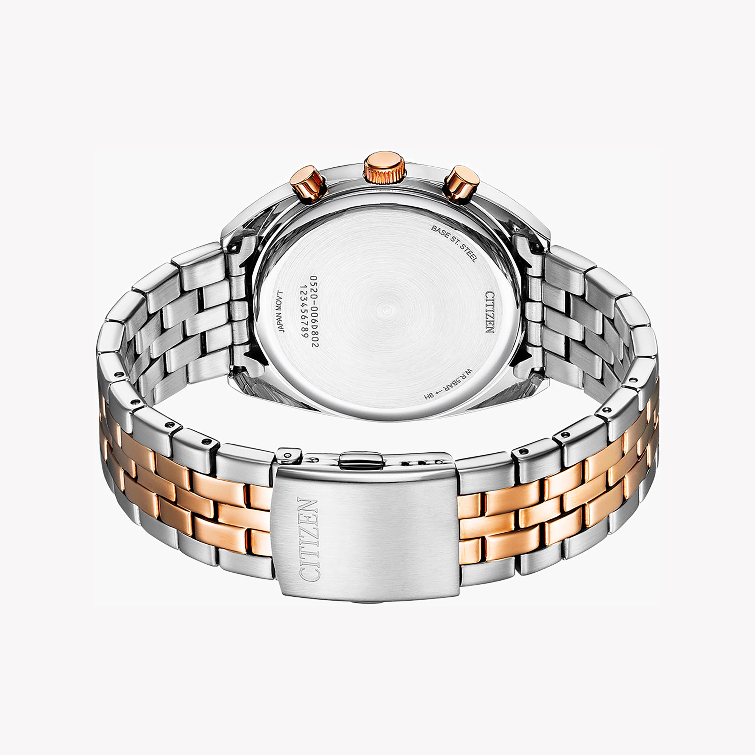 CITIZEN AN8216-50L DYNAMIC PRECISION – STILVOLLE HERREN-CHRONOGRAPHENUHR mit blauem Zifferblatt und silber-roségoldenem Band