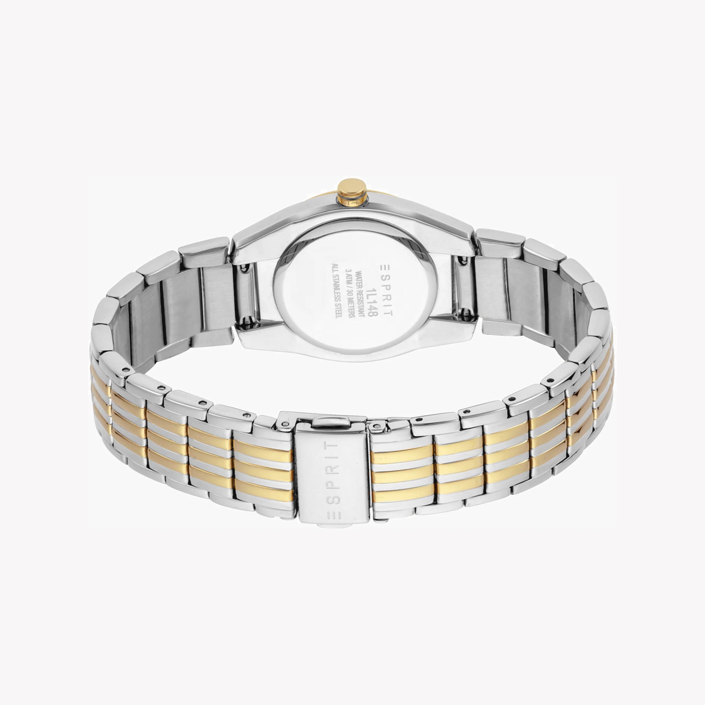 ESPRIT Damenuhr mit silbernem Edelstahlgehäuse und silbernem und goldenem Edelstahlarmband