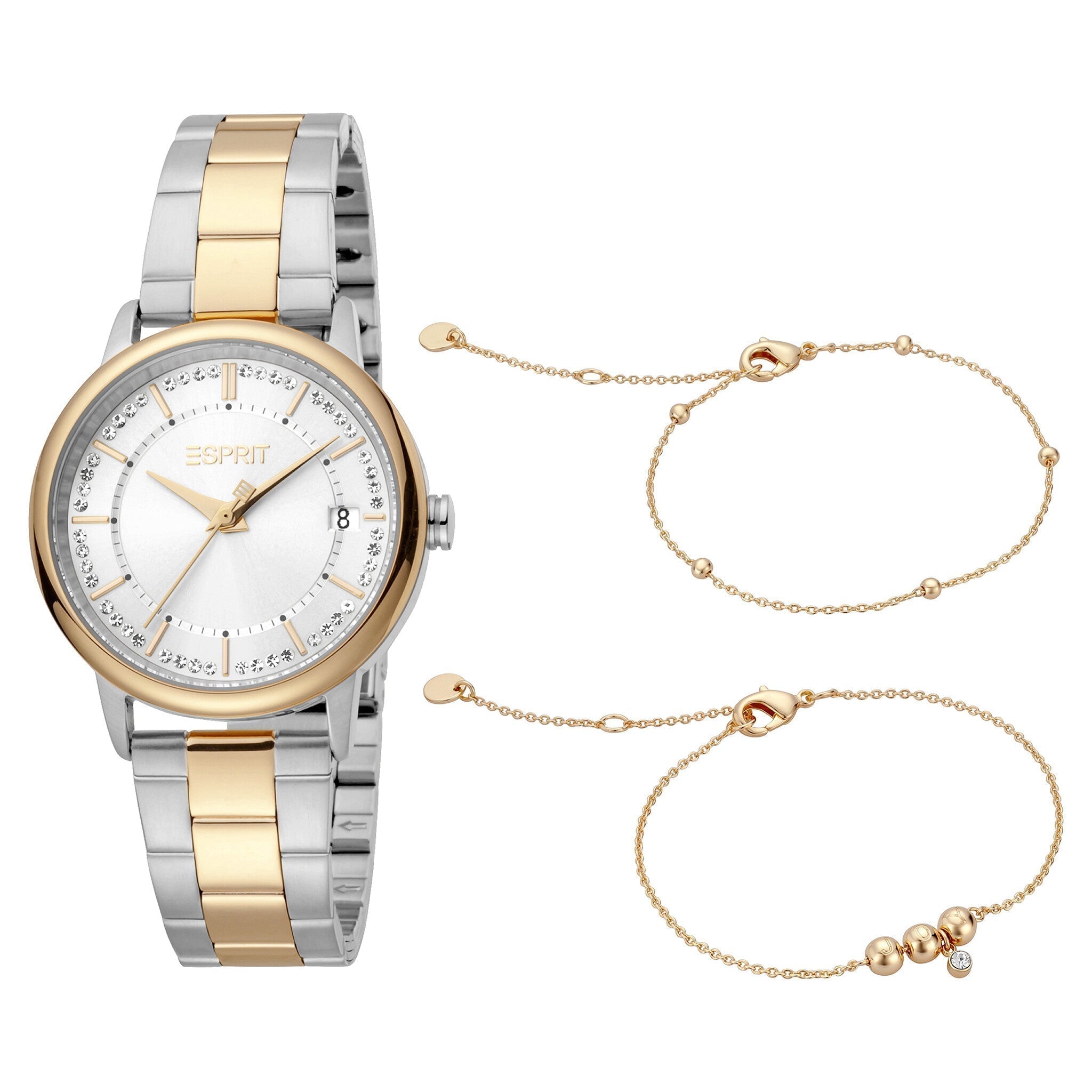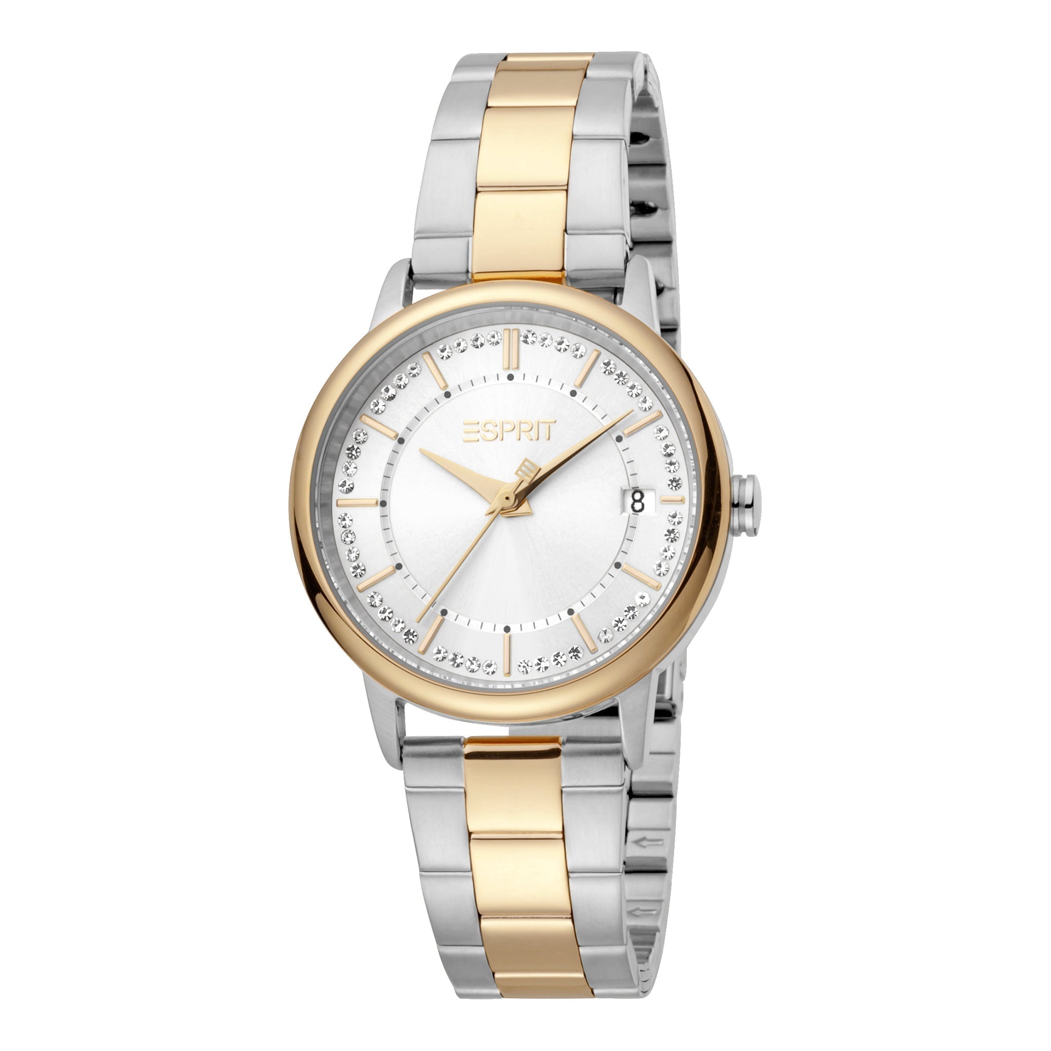 ESPRIT Damenuhr mit silbernem Edelstahlgehäuse und silbernem und goldenem Edelstahlarmband