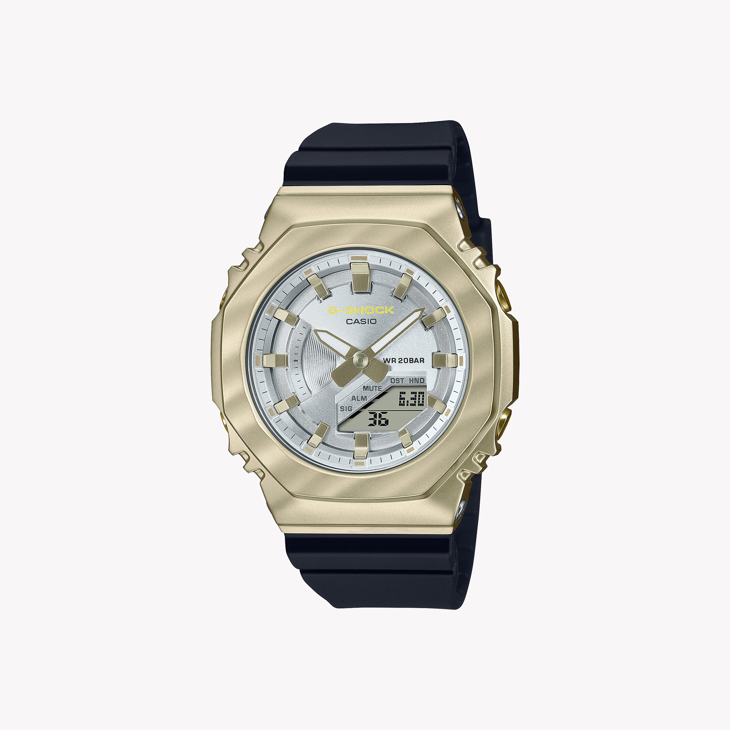 G-Shock Damenuhr mit silbernem Harz- und Edelstahlgehäuse und silbernem Harzarmband