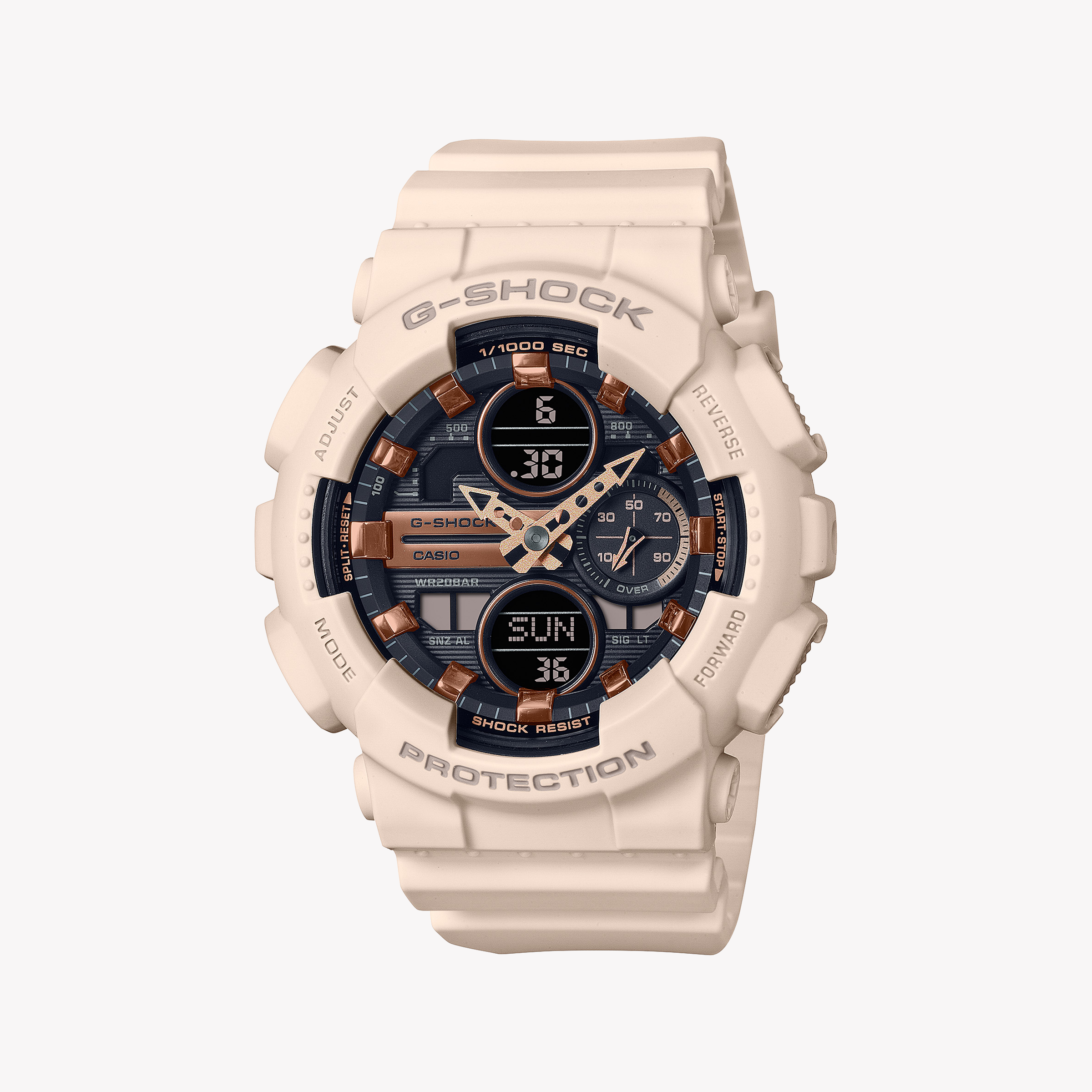 Erleben Sie mühelose Eleganz mit der GMA-S140M-4ADR G-SHOCK-Uhr. Stilvolles Beige, 200 m wasserdicht, leichtes Harzarmband und vielseitige Funktionen für jedes Abenteuer.