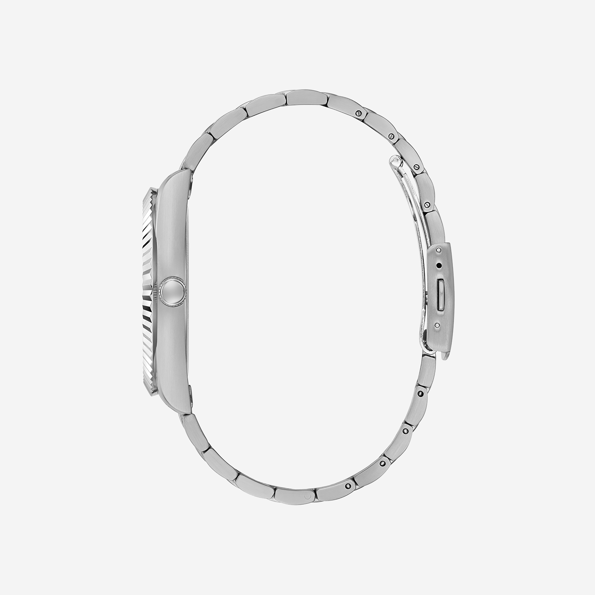 - Bequeme Passform: Das robuste Edelstahlarmband verstärkt nicht nur das auffällige Erscheinungsbild der Uhr, sondern bietet auch eine bequeme Passform für den ganztägigen Tragekomfort.