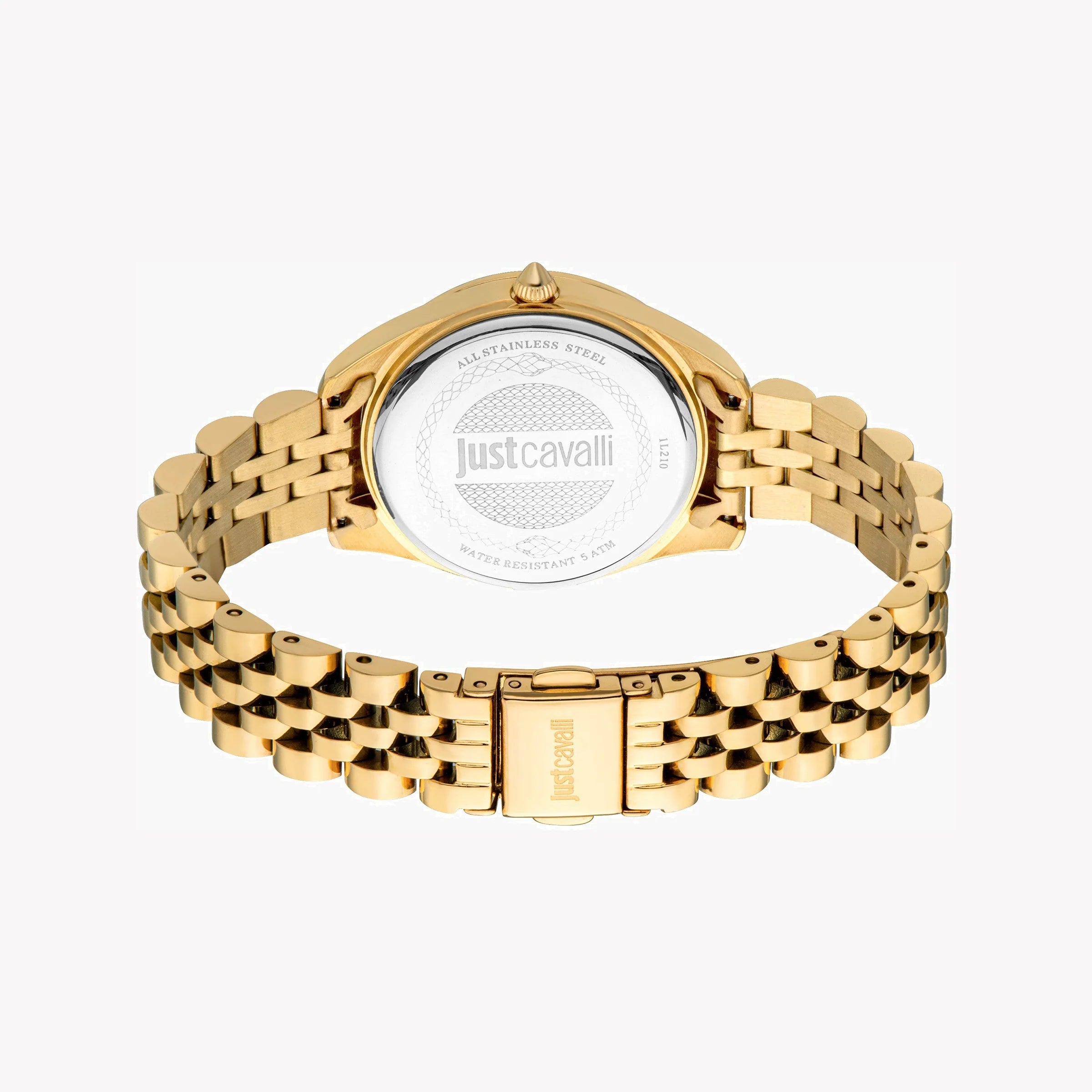 JUST CAVALLI Damenuhr mit goldenem Edelstahlgehäuse und goldenem Edelstahlarmband