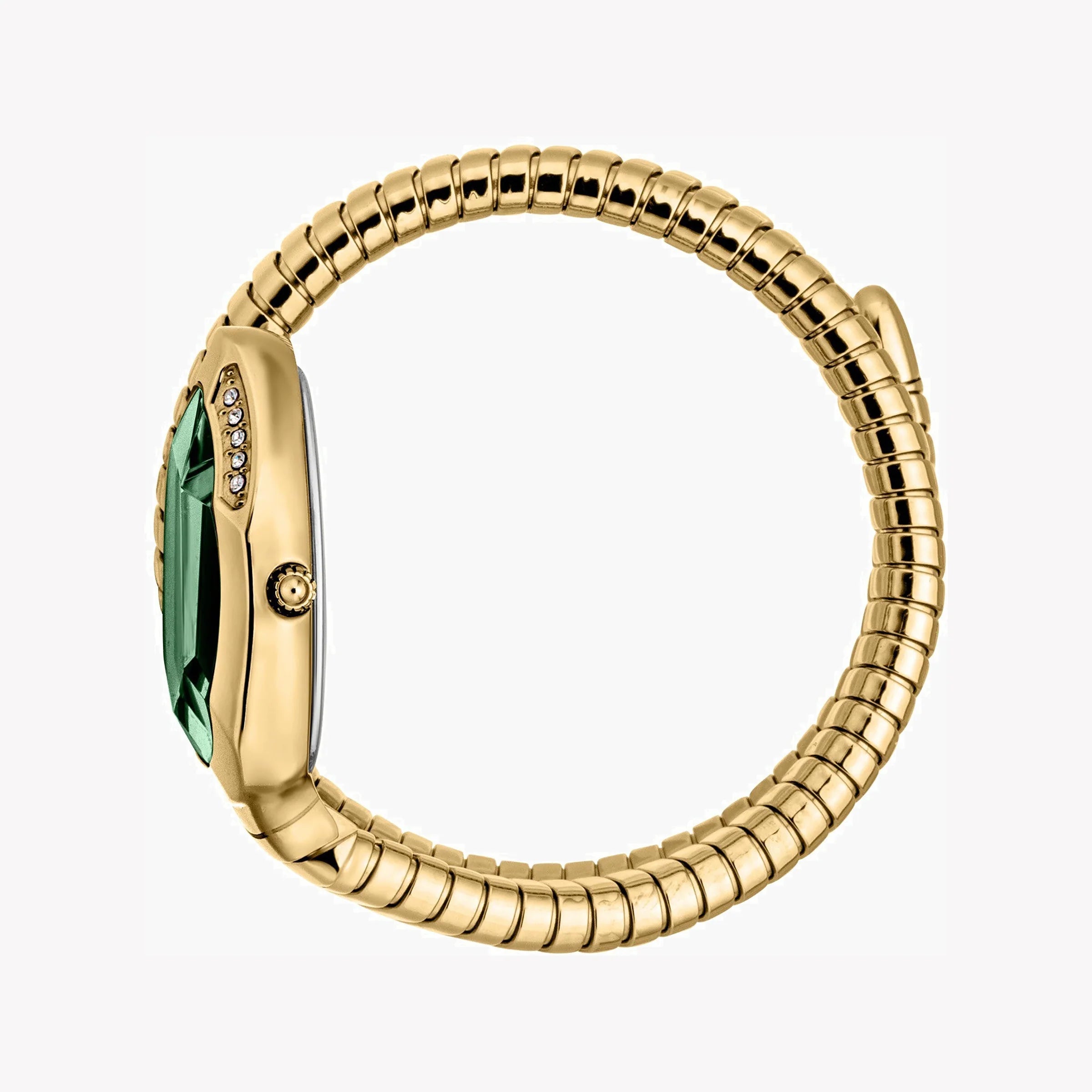 Zeitlos, raffiniert, elegant. Diese Just Cavalli Damenarmbanduhr vereint alles. Vom goldenen Edelstahlarmband bis zum asymmetrischen goldenen Edelstahlgehäuse mit einem Durchmesser von 22 x 33,5 mm und natürlich dem eleganten grünen Zifferblatt ist diese Uhr die perfekte Darstellung ultimativer Raffinesse.
