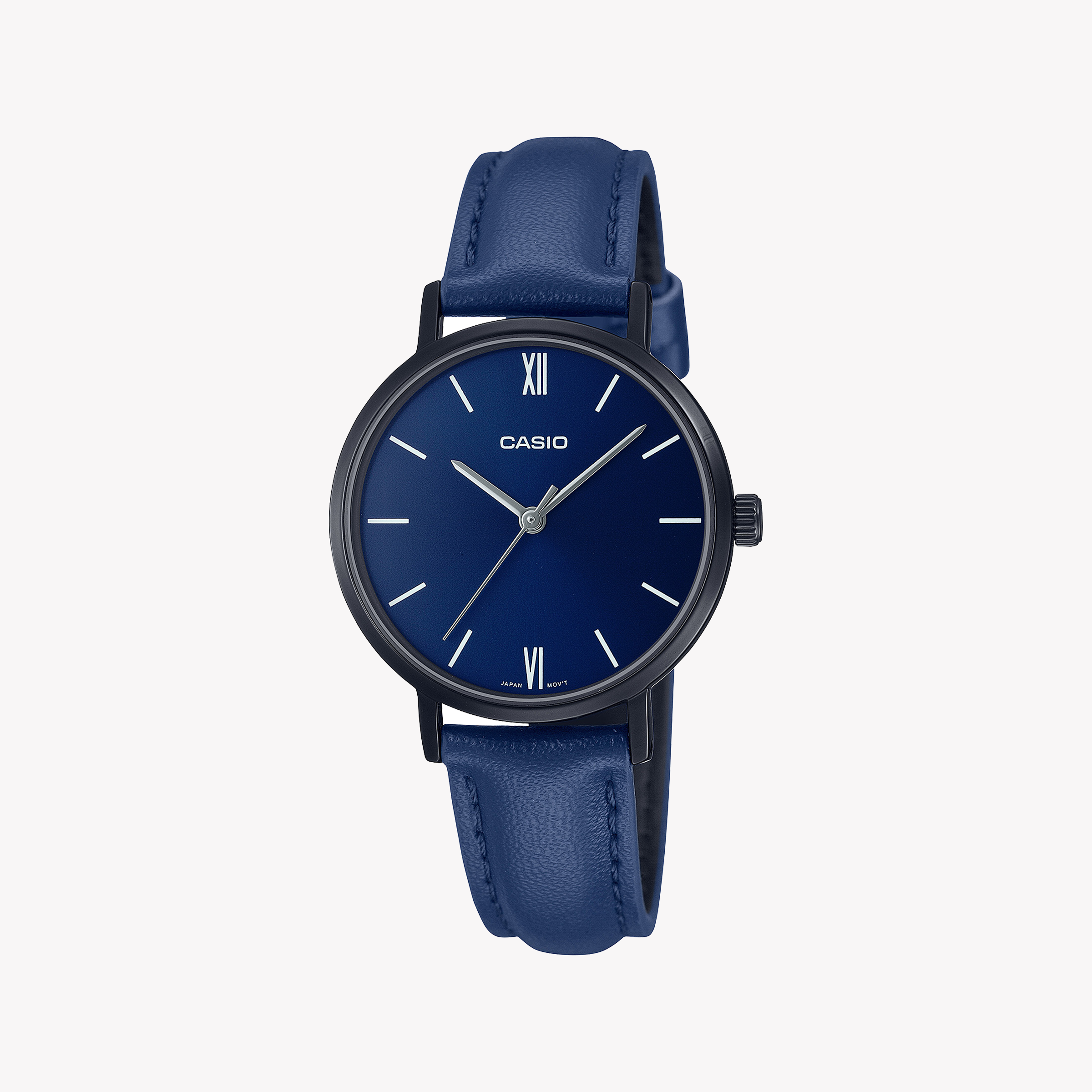 CASIO LTP-VT02BL-2AUDF SPORTLICHE ELEGANZ – ATEMBERAUBENDE Damenuhr MIT BLAUEM ZIFFERBLATT UND KOMFORTIGEM LEDERBAND