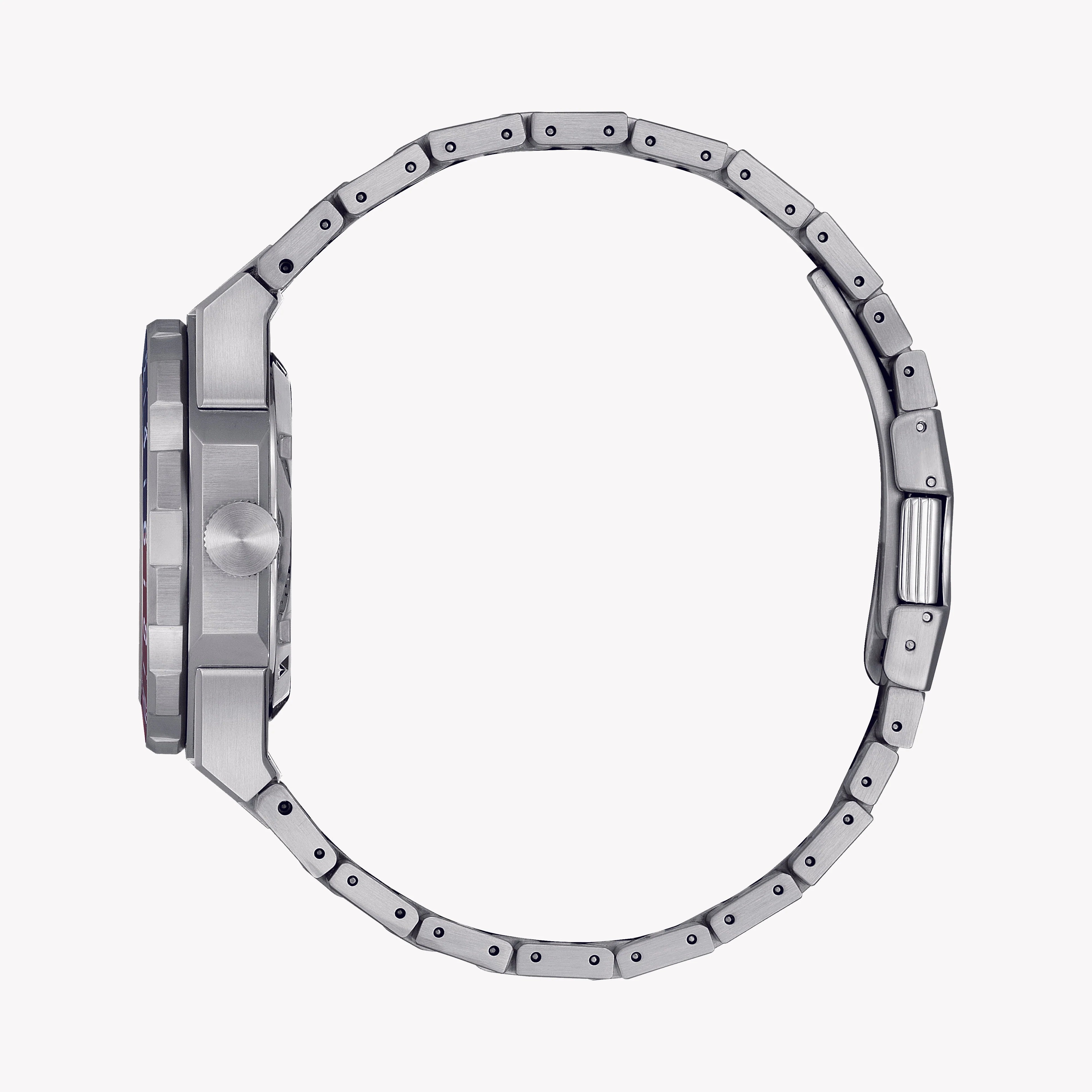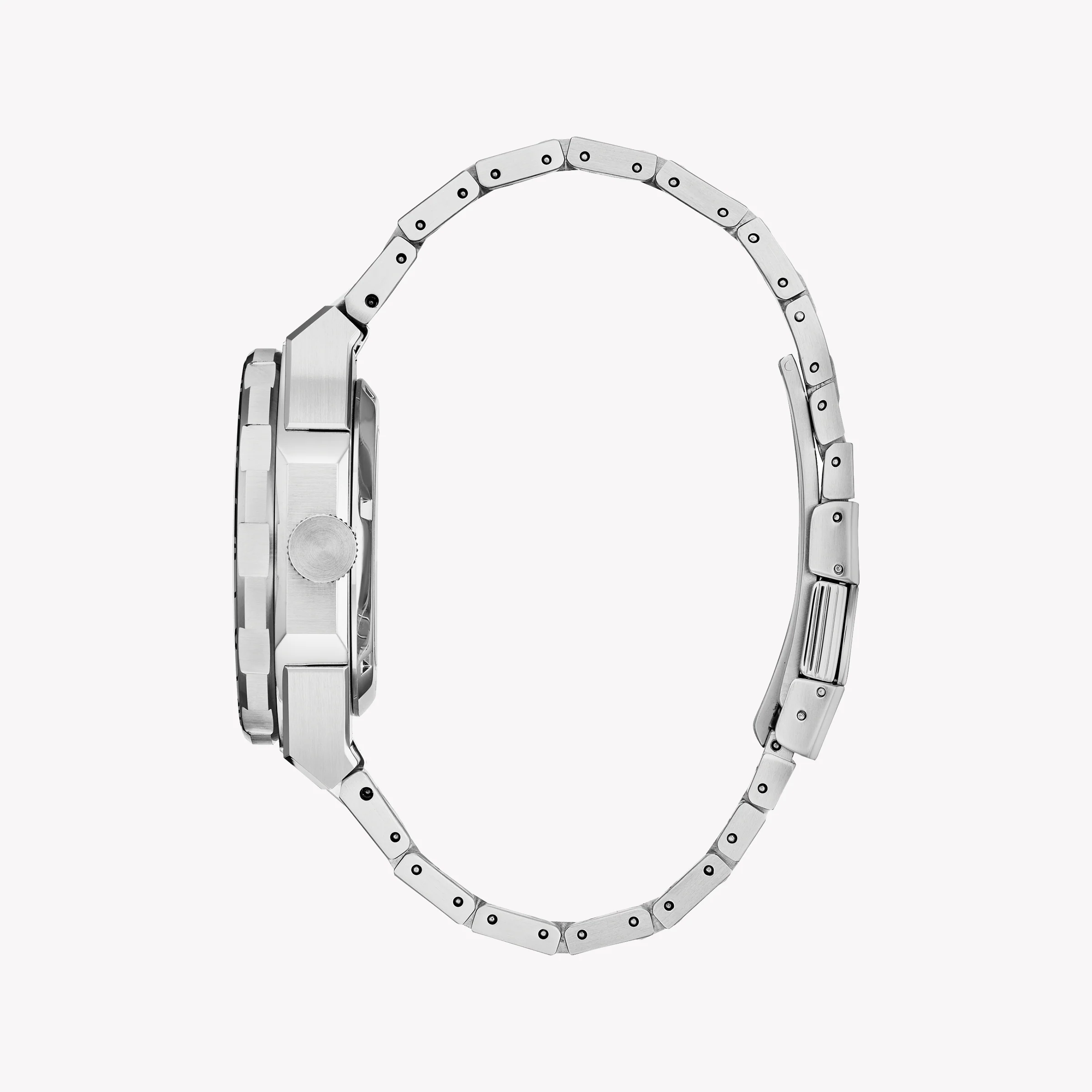 - Auffällige Ästhetik: Das 42 mm große Gehäuse und das Armband aus Edelstahl in einem eleganten Silberton verleihen einen modernen Akzent, der perfekt zu jeder Garderobe passt, egal ob Sie im Vorstandsbüro sind oder einen Abend in der Stadt genießen.