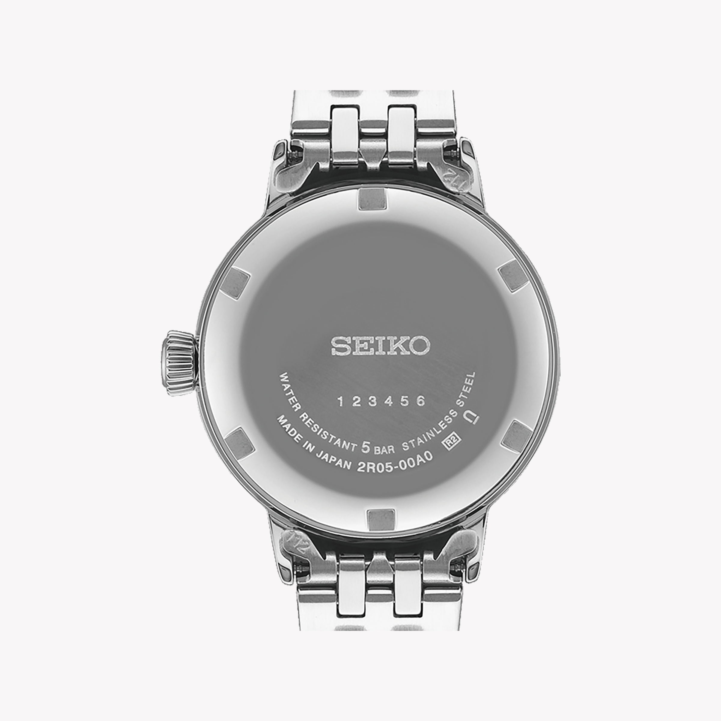 Embrace elegance with the SEIKO PRESAGE SRE007J1. This stunning women's watch features a 30.3 mm stainless steel case, a captivating light blue dial, and 5 ATM water resistance, perfect for any occasion. A true statement piece!
