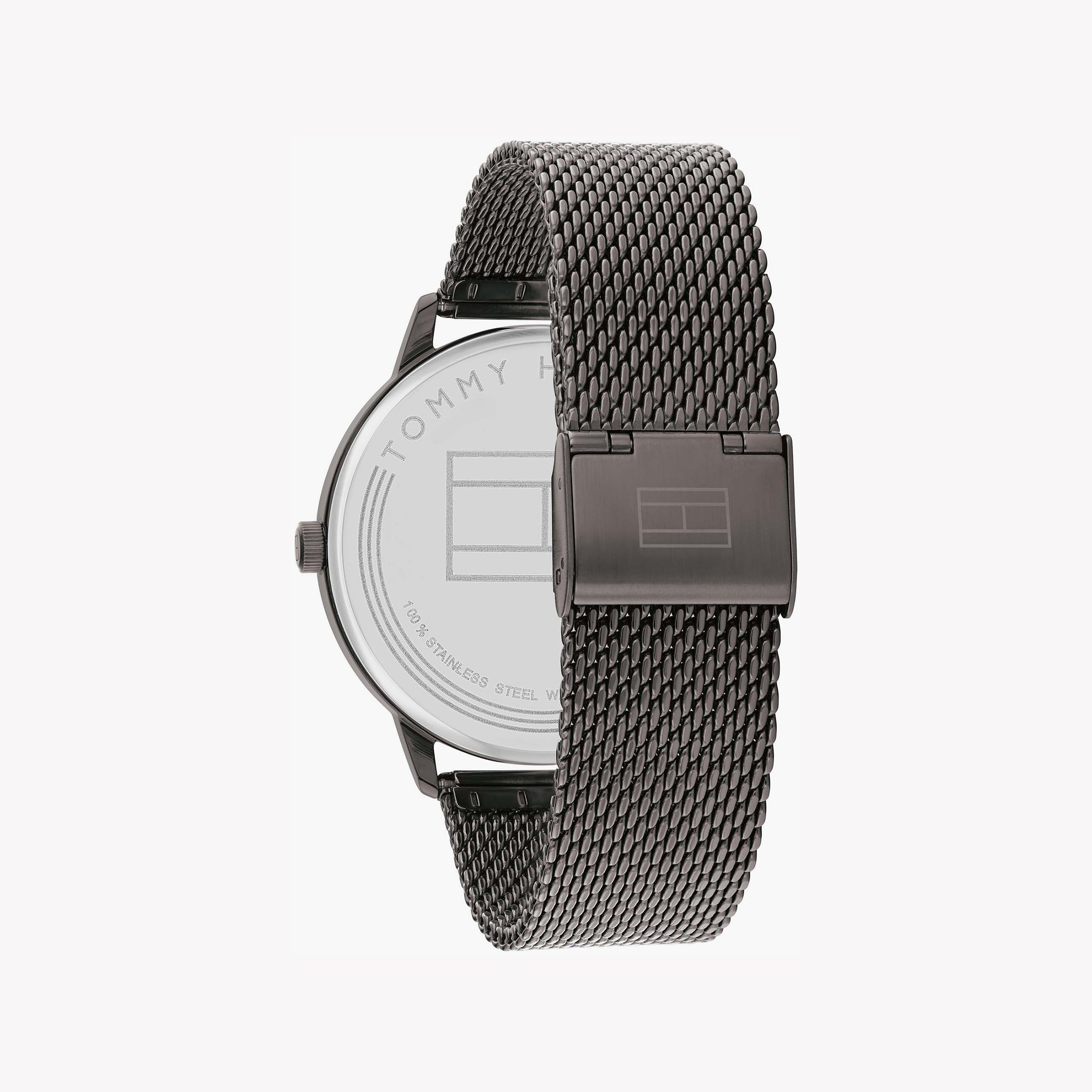 TOMMY HILFIGER 1674782 MODERNE SLEEK-GRAUE EDELSTAHL-HERRENUHR mit blauem Zifferblatt