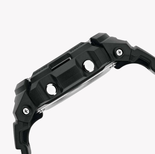 - Robuste Bauweise: Die Uhr besitzt ein robustes 46 mm Gehäuse aus einer Kombination von Edelstahl und Resin, das einen auffälligen Look bietet und gleichzeitig hervorragenden Schutz gegen raue Bedingungen gewährleistet.