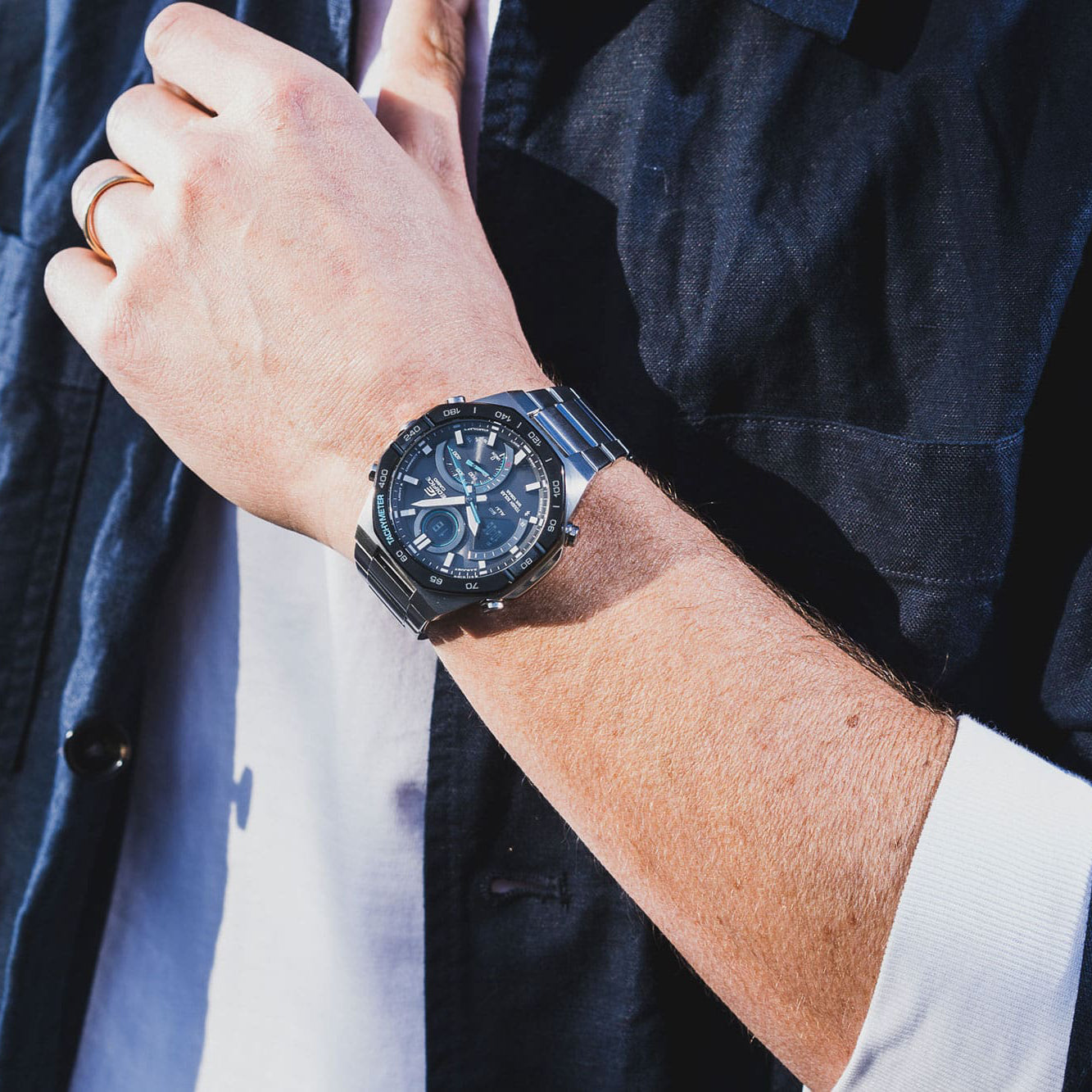 Schmücken Sie Ihr Handgelenk mit der Casio ECB-950DB-1AEF, wo Raffinesse auf Innovation trifft und dafür sorgt, dass Sie immer auf alles vorbereitet sind, was vor Ihnen liegt.