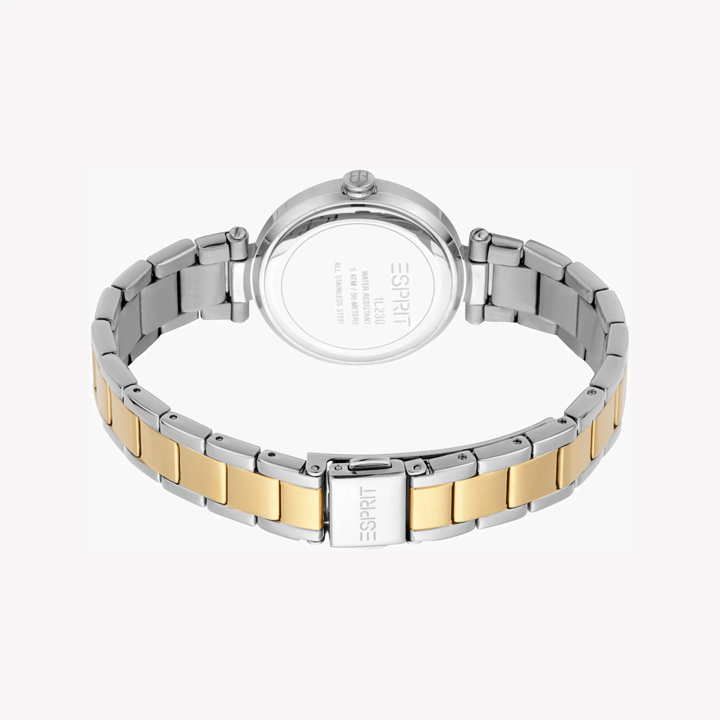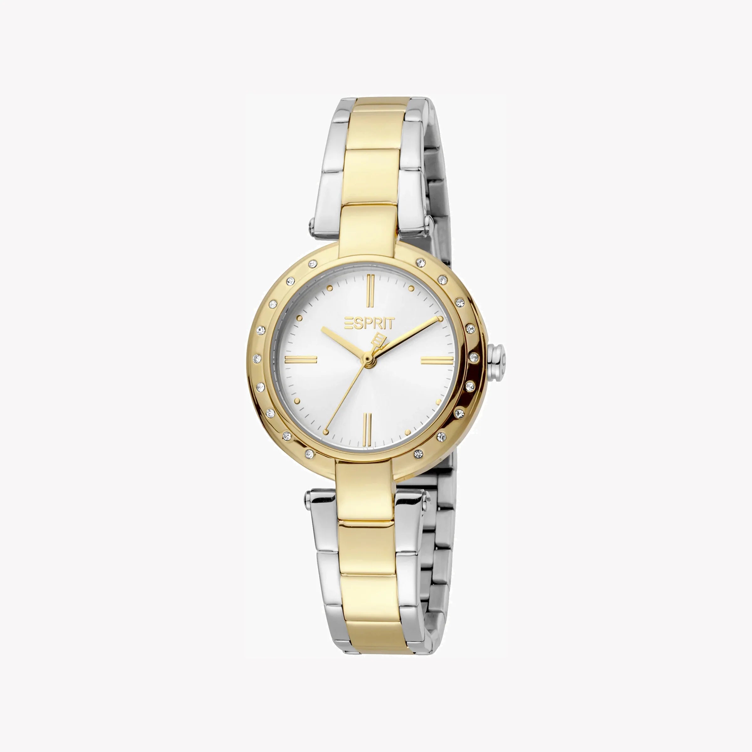 ESPRIT Damenuhr mit silbernem Edelstahlgehäuse und silbernem und goldenem Edelstahlarmband