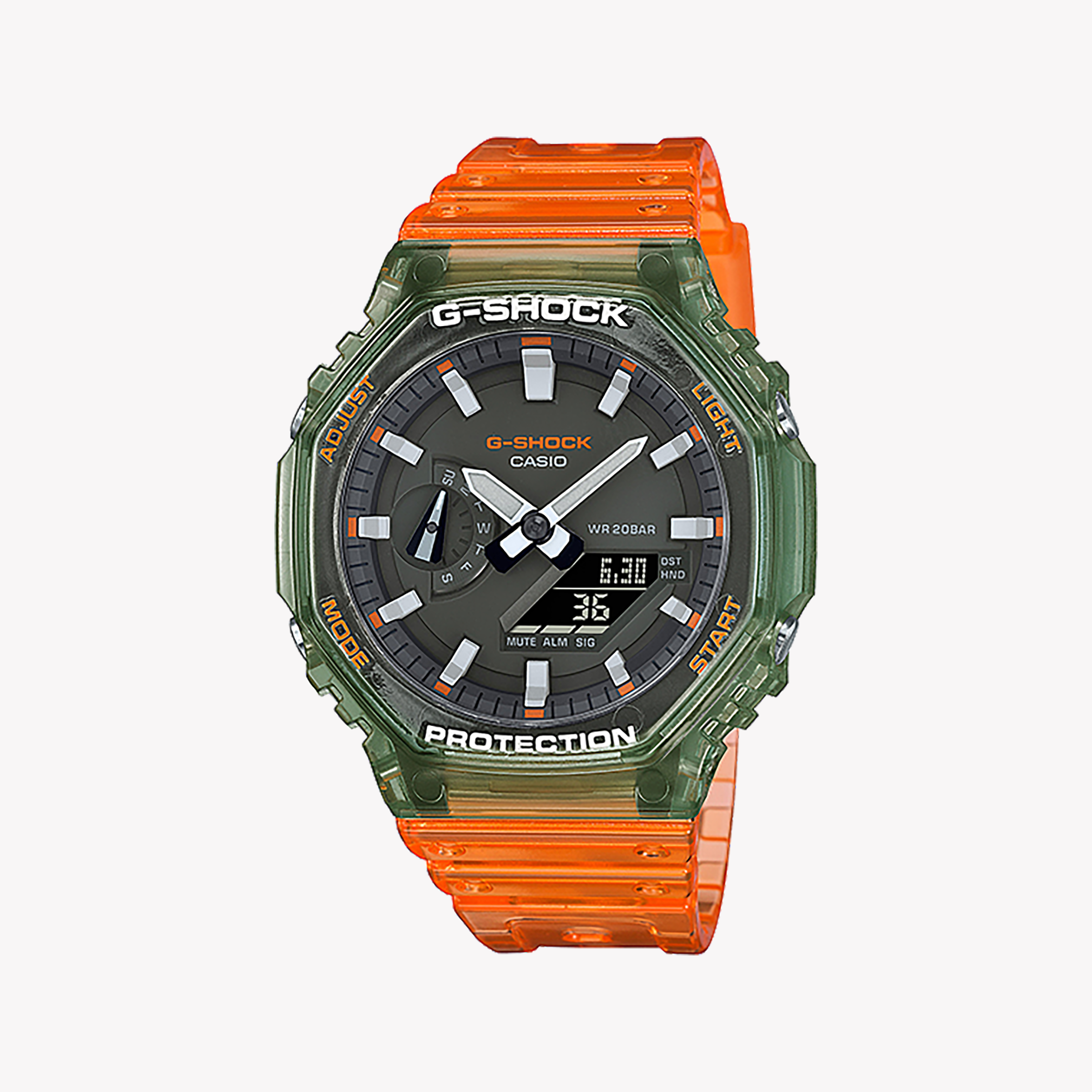 CASIO G-SHOCK GA-2100HC-4ADR – Herrenuhr der BOLD ADVENTURE SERIES mit leuchtendem orange-grünem Design