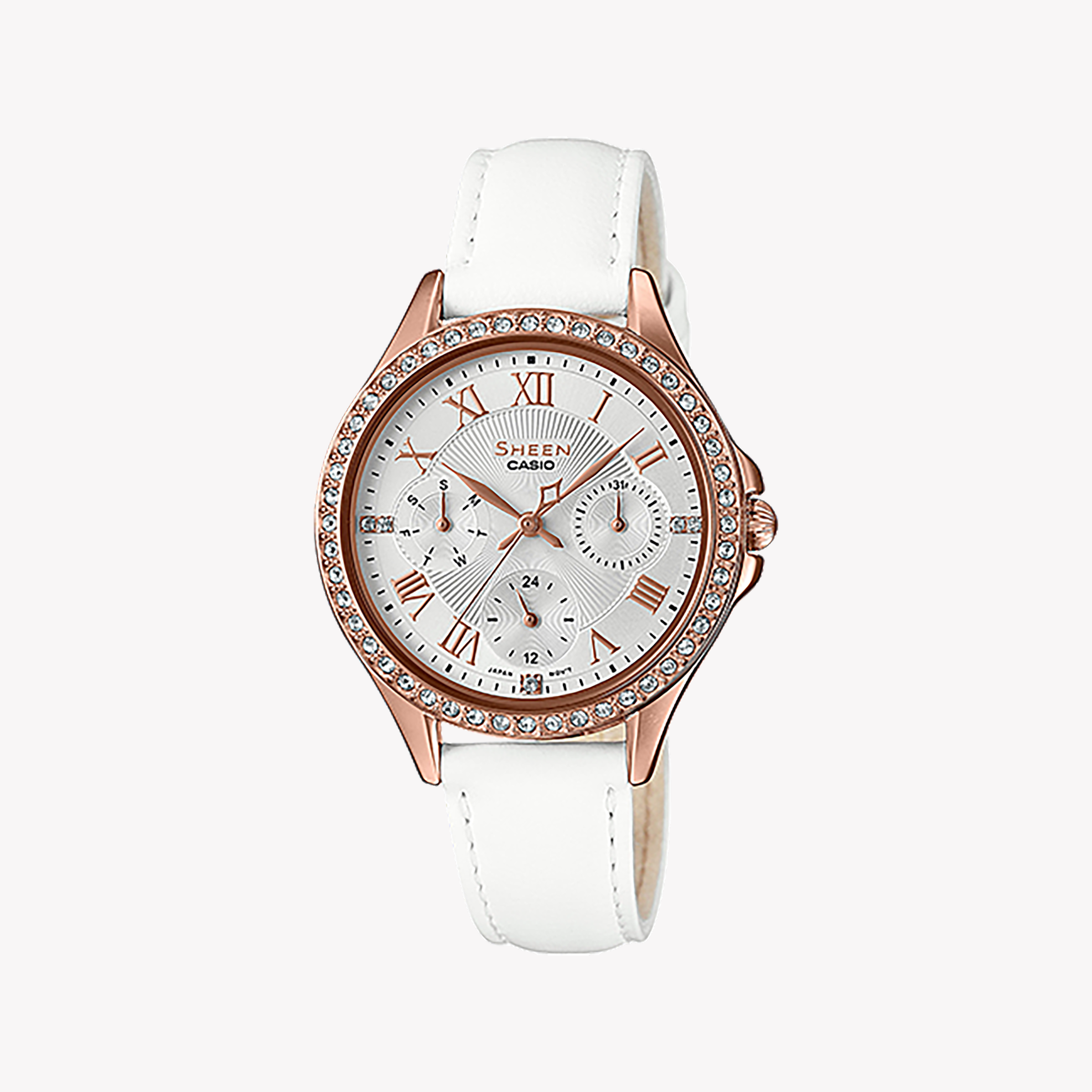 CASIO SHE-3062PGL-7AUDF – ELEGANTE ADVENTURE-DAMENUHR mit roségoldenem Gehäuse und Lederarmband