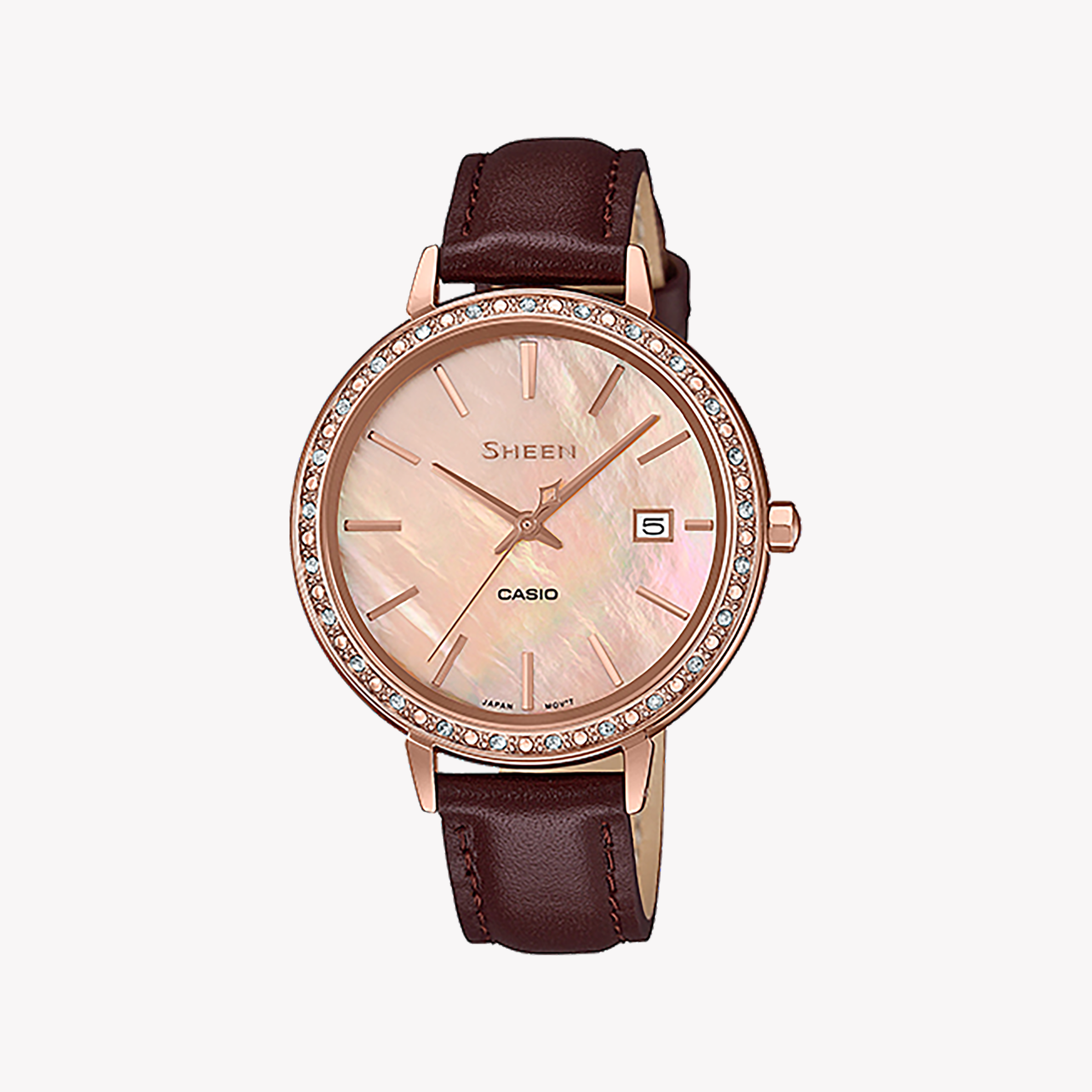 CASIO SHE-4052PGL-4AUDF ELEGANTE VIELSEITIGKEIT – ROSÉGOLDENER ZEITMESSER MIT LEDERBAND
