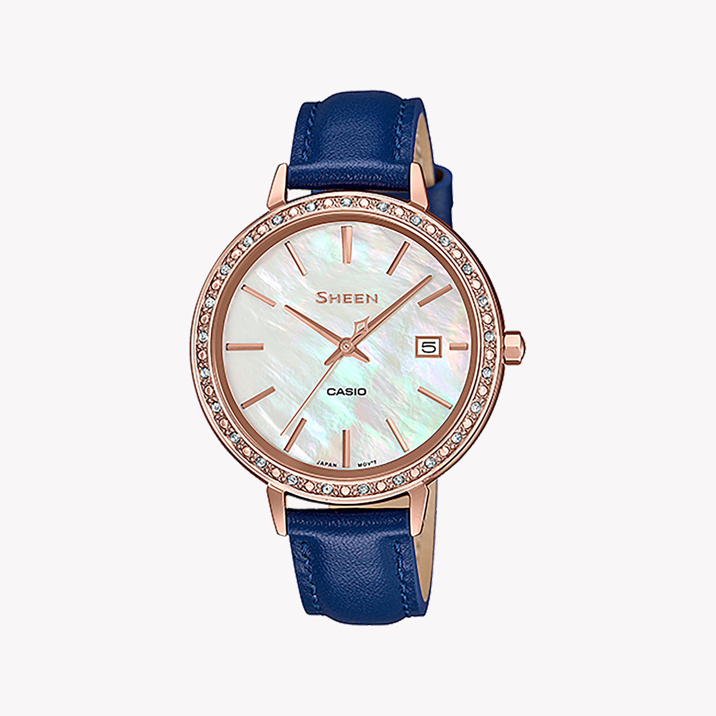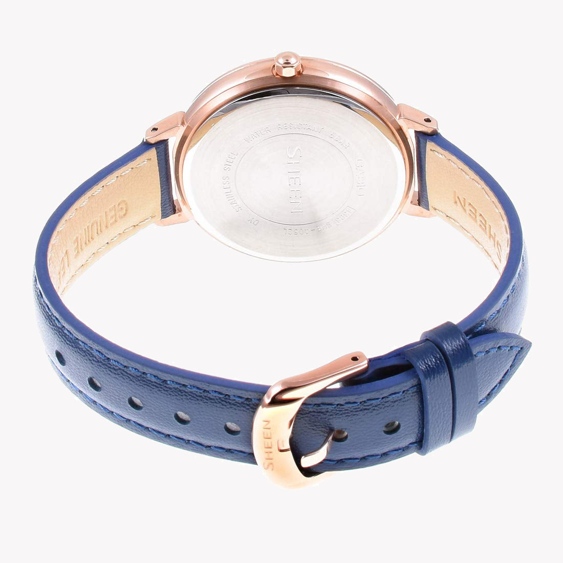 - Komfort trifft auf Langlebigkeit: Mit einem luxuriösen blauen Lederband bietet die SHE-4052PGL-7AUDF einen bequemen Sitz für den ganzen Tag, egal ob Sie bei der Arbeit sind oder Freizeitaktivitäten nachgehen.