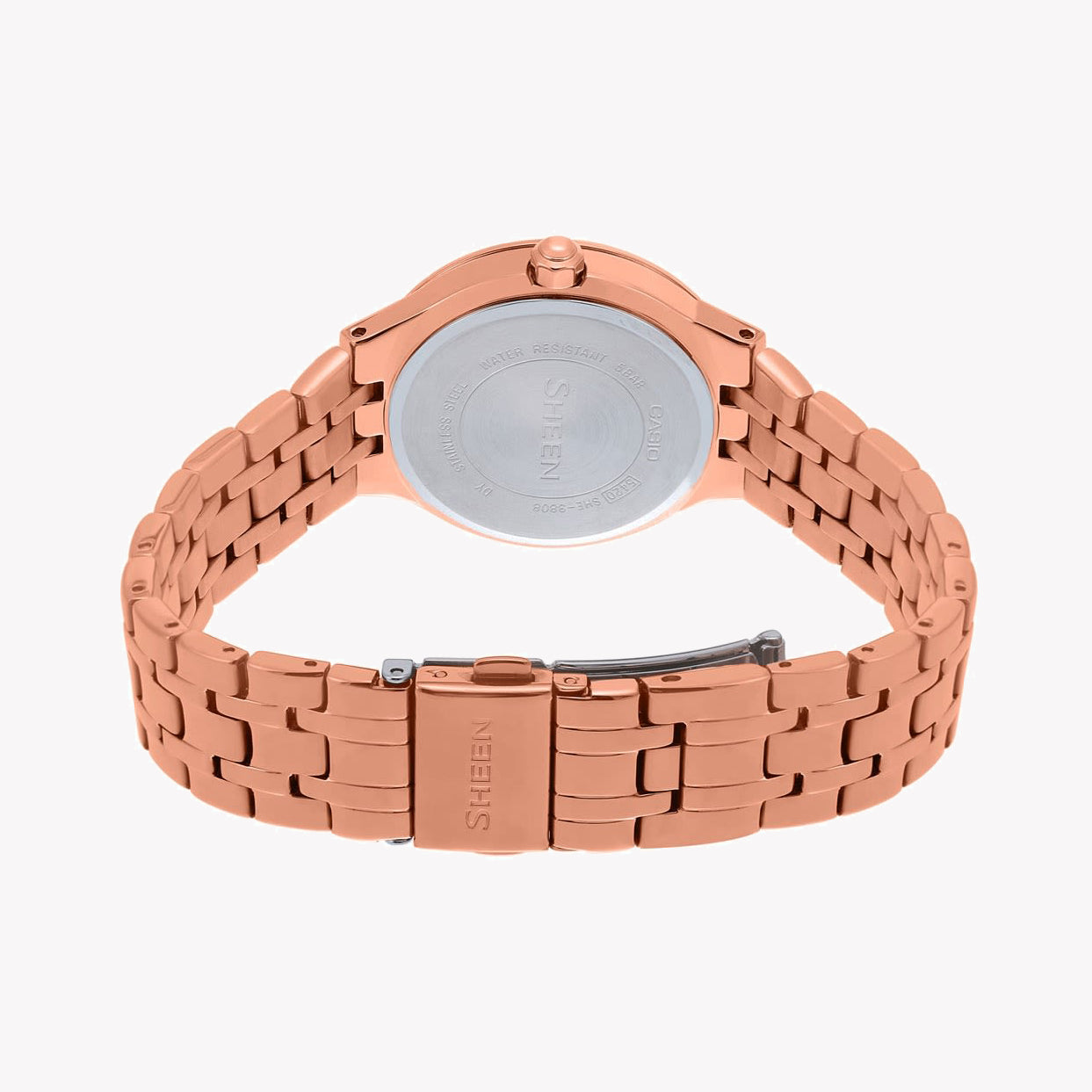 CASIO SHE-4804PG-9AUDR – SPORTLICHE ELEGANZ-ZEITMESSER MIT ROSÉGOLD- UND SWAROVSKI-AKZENTEN
