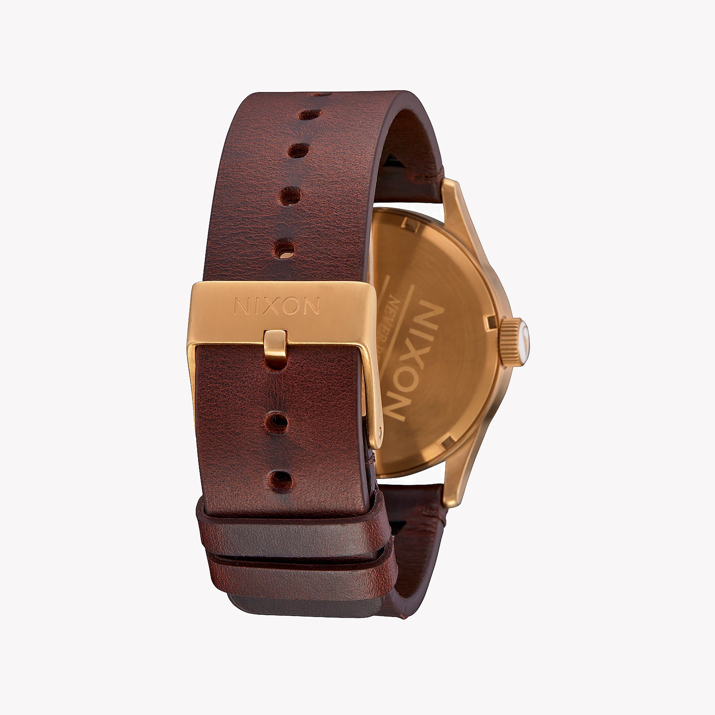 NIXON A105-5033 mutiges Statement – moderne Herrenuhr mit braunem Stahl- und goldenem Lederband