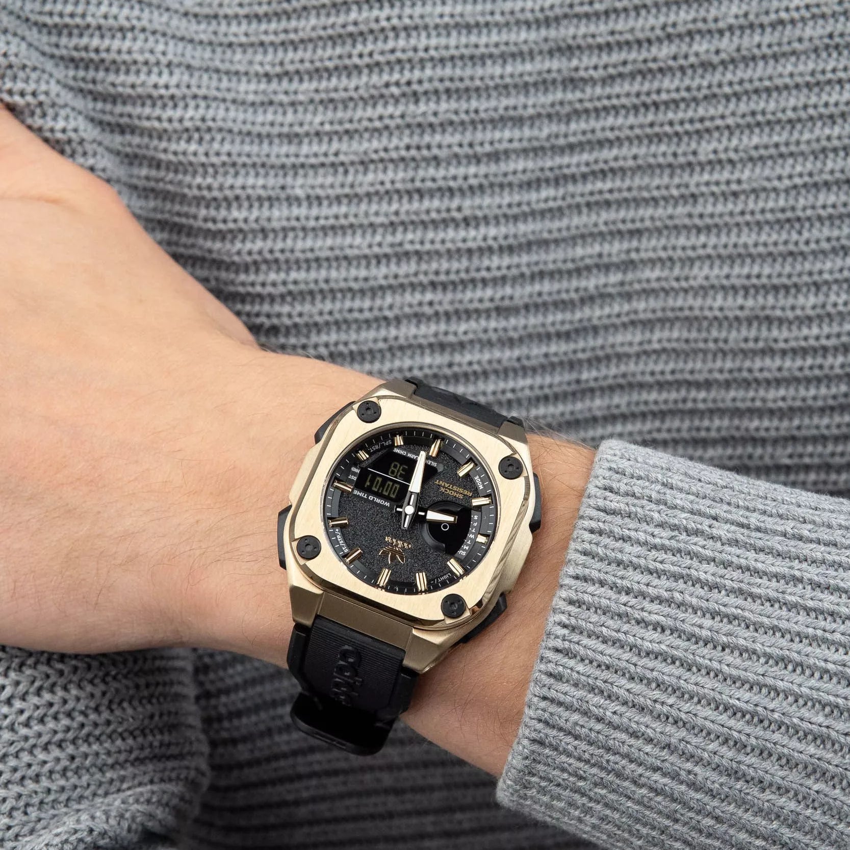 Stainless Steel Case: The watch features a durable 45 mm stainless steel case that not only adds a touch of sophistication but also stands up to the rigors of everyday life. Its gold finish provides a striking contrast against the sleek black dial, ensuring you're always on point.