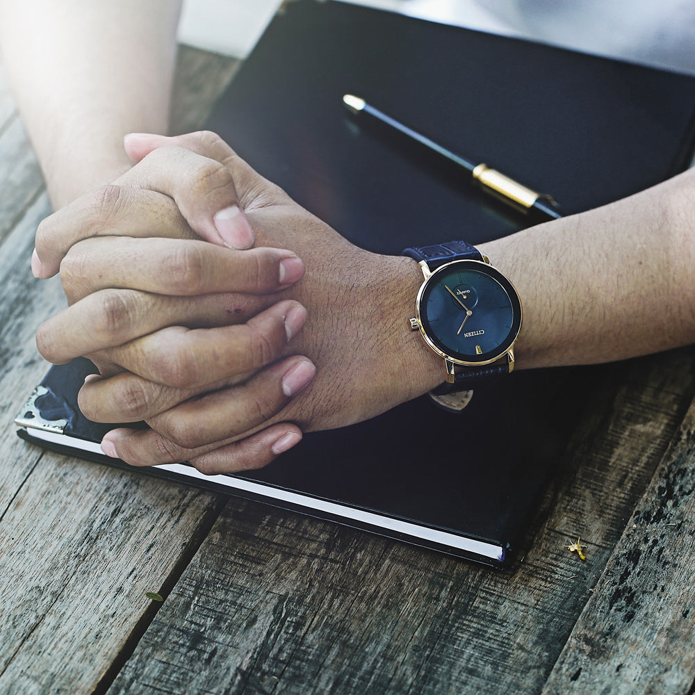 CITIZEN BE9183-03L – ELEGANTE HERRENUHR MIT BLAUEM ZIFFERBLATT UND GOLDGEHÄUSE AUS EDELSTAHL