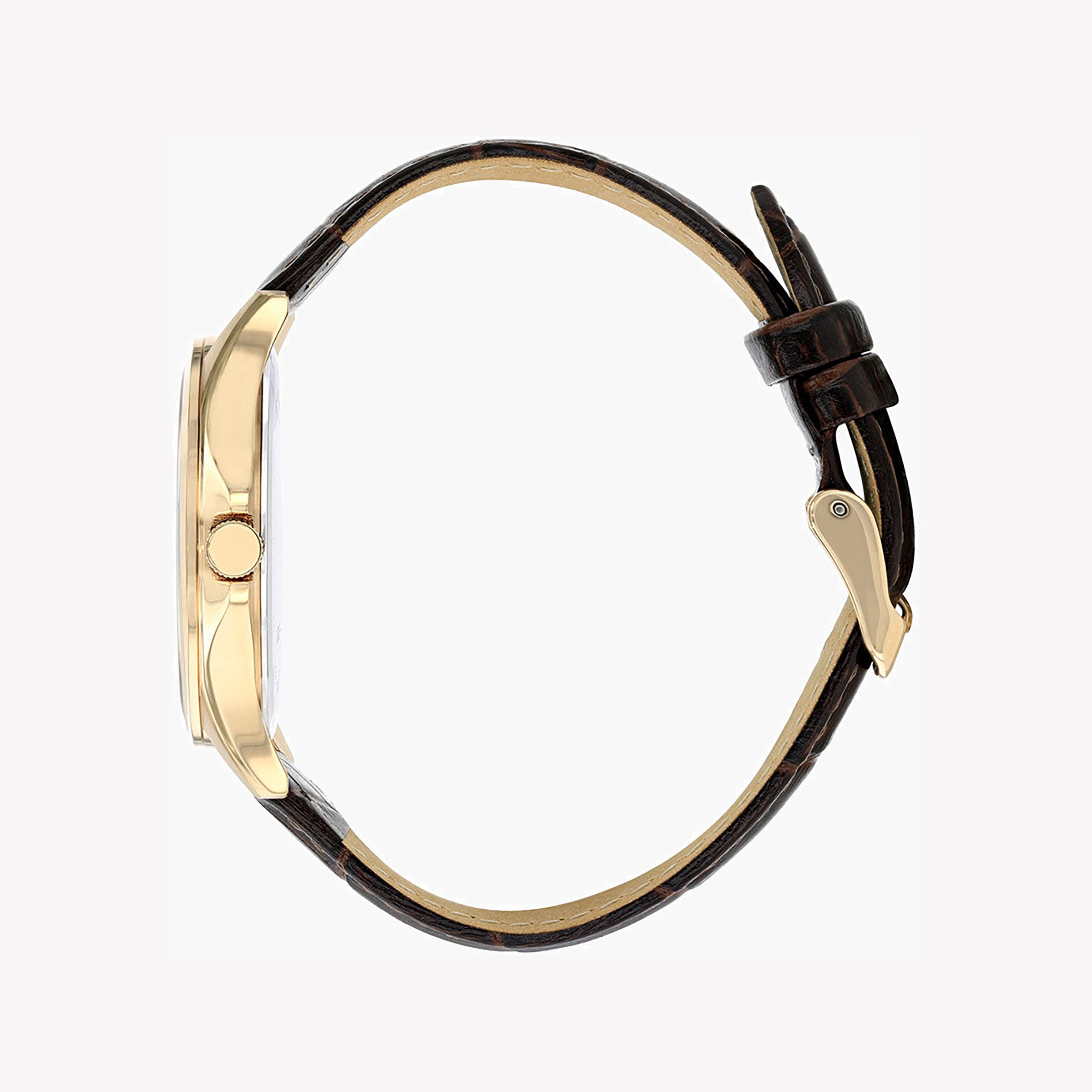 - Bequemes Tragen: Das luxuriöse Armband aus braunem Kalbsleder ist auf Komfort ausgelegt und macht diese Uhr perfekt für den Ganztagstrage, egal ob im Büro oder in der Stadt.