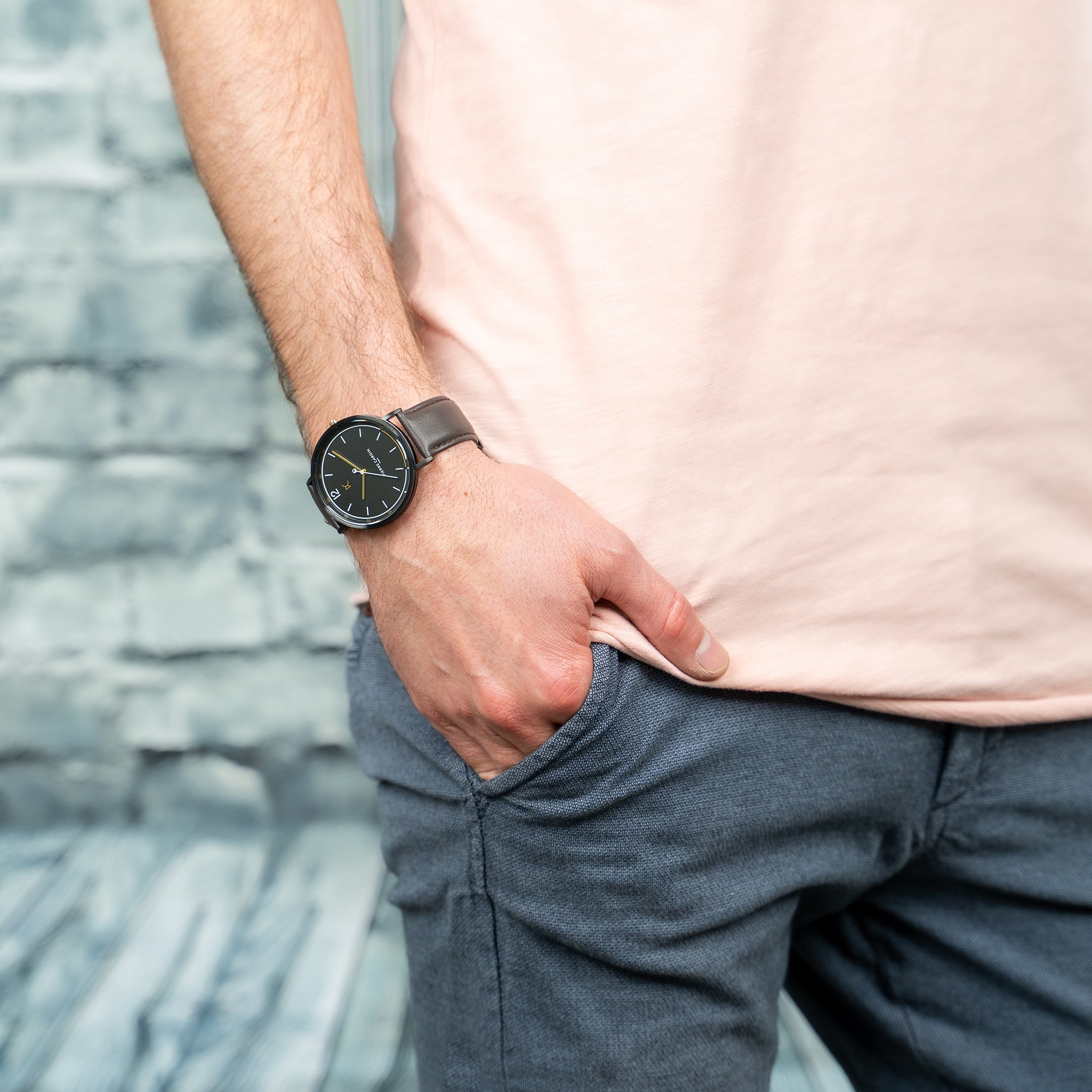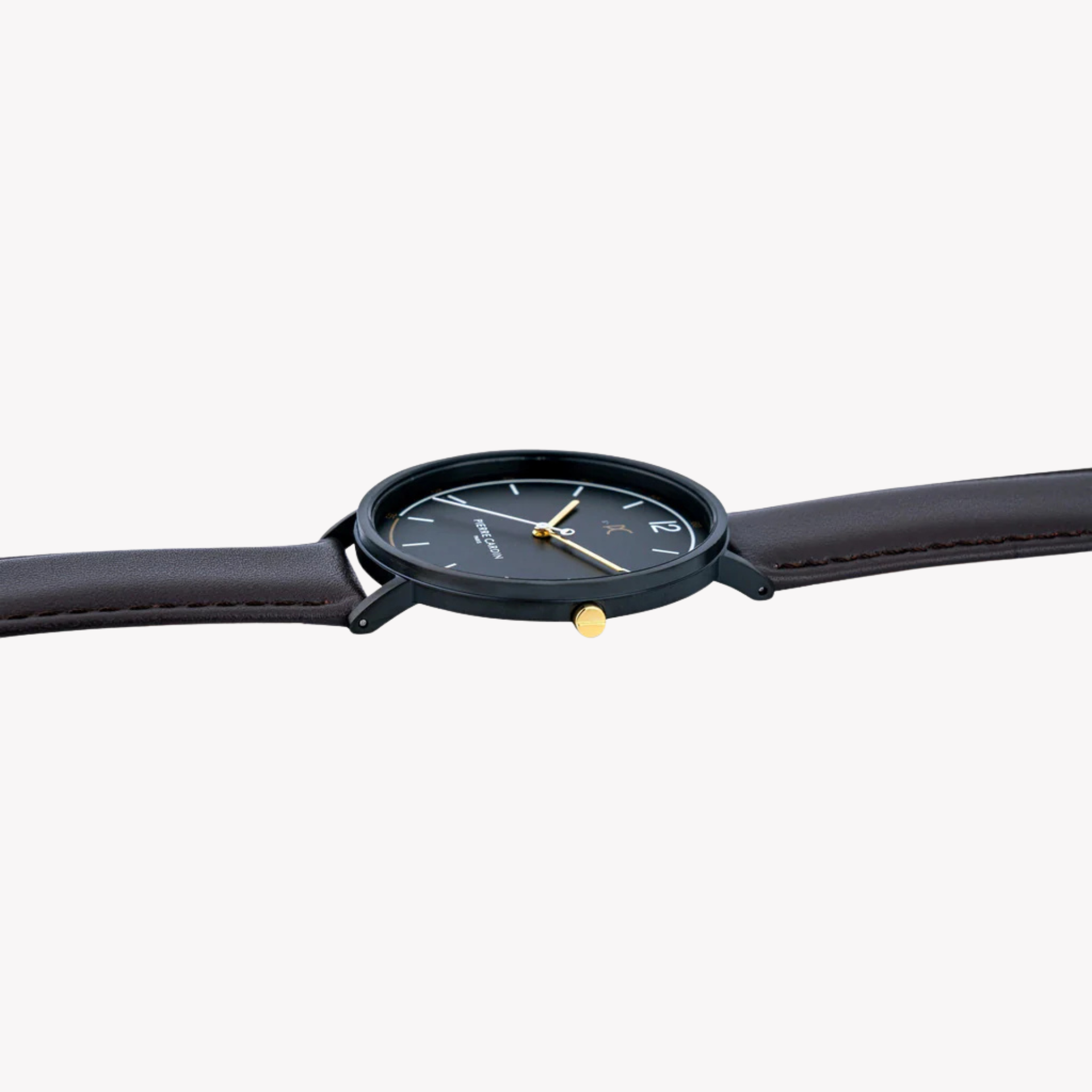 PIERRE CARDIN CBN.3011 – ELEGANTE HERRENUHR AUS EDELSTAHL MIT SCHWARZEM ZIFFERBLATT UND BRAUNEM LEDERBAND