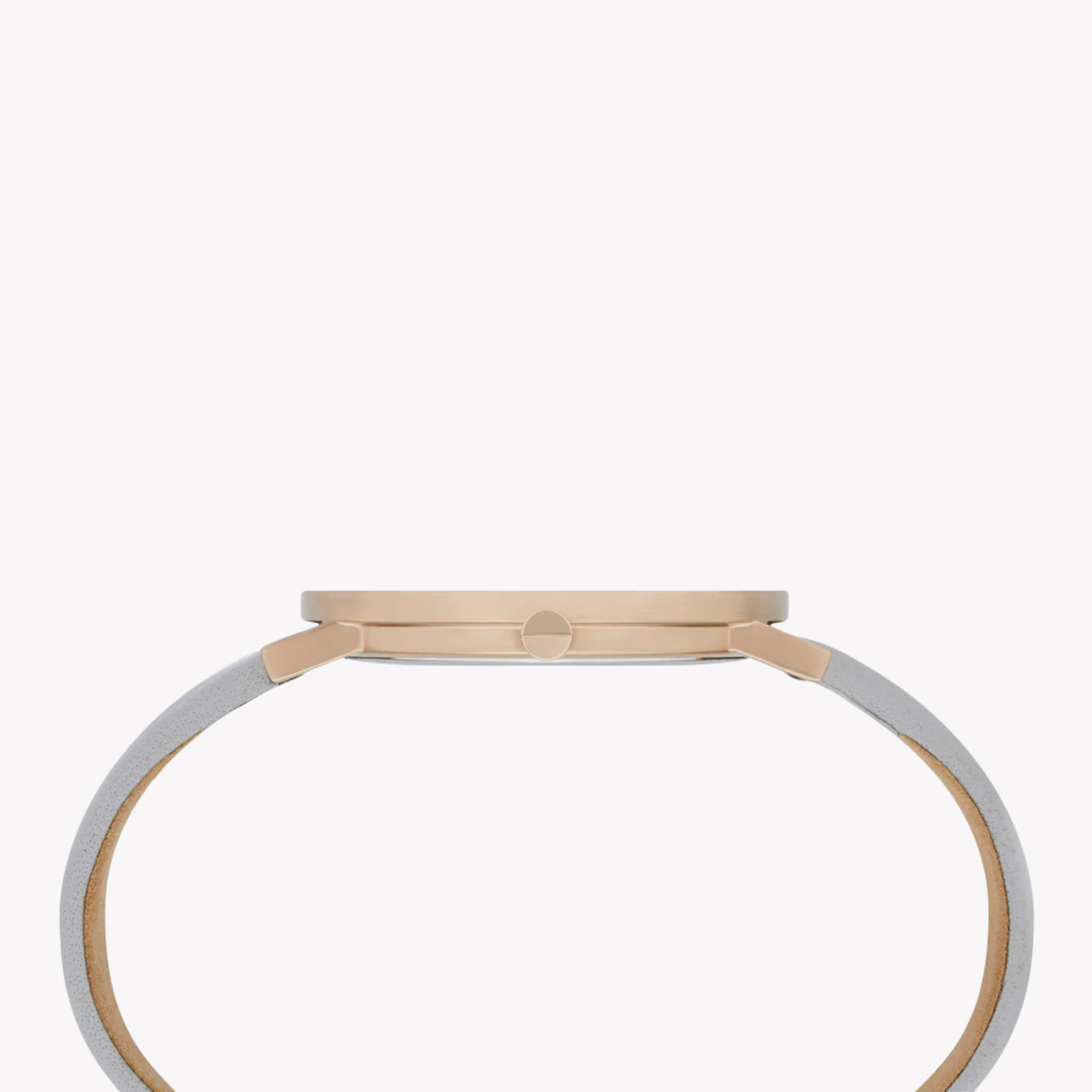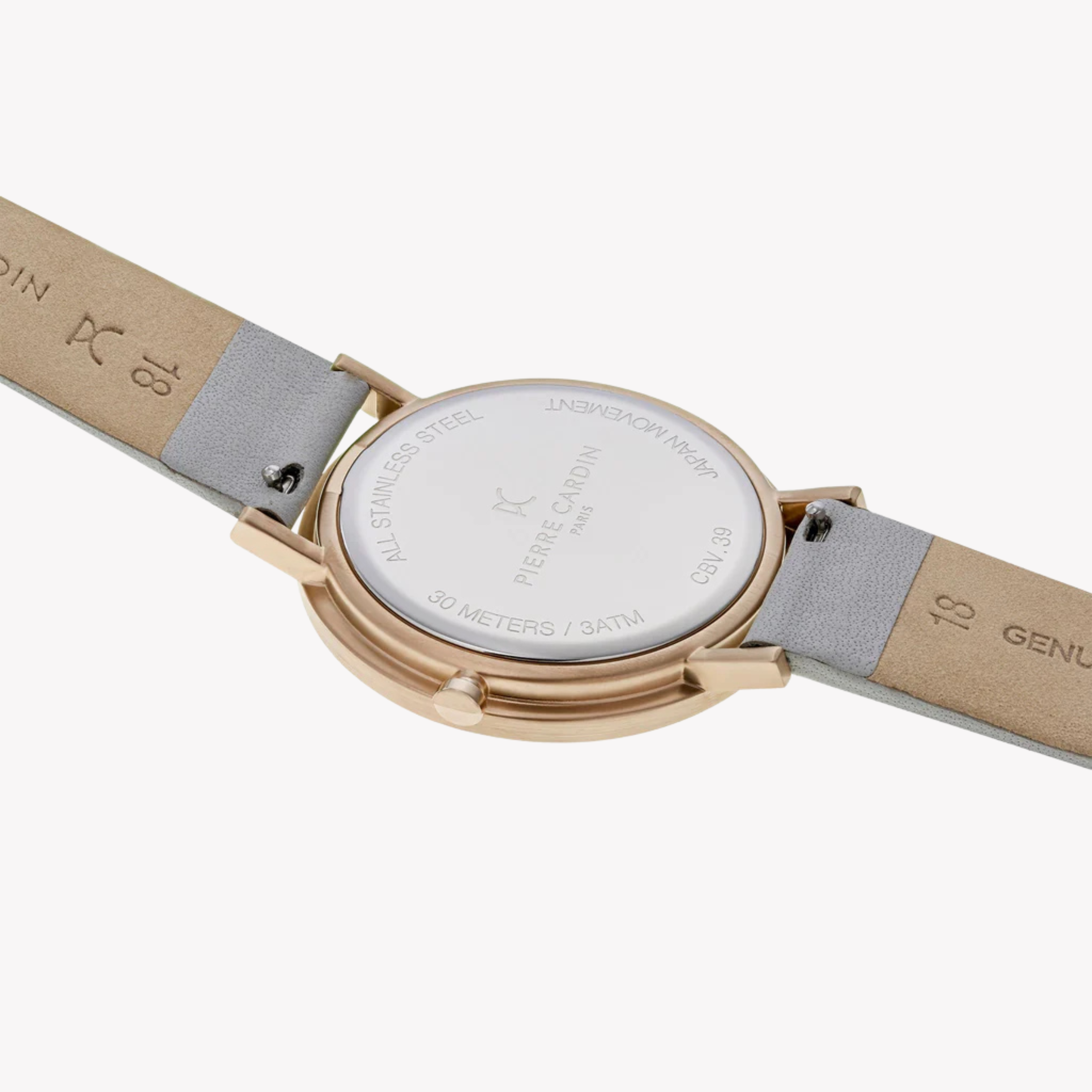 PIERRE CARDIN Damenuhr mit roségoldenem Edelstahlgehäuse und grauem Lederarmband