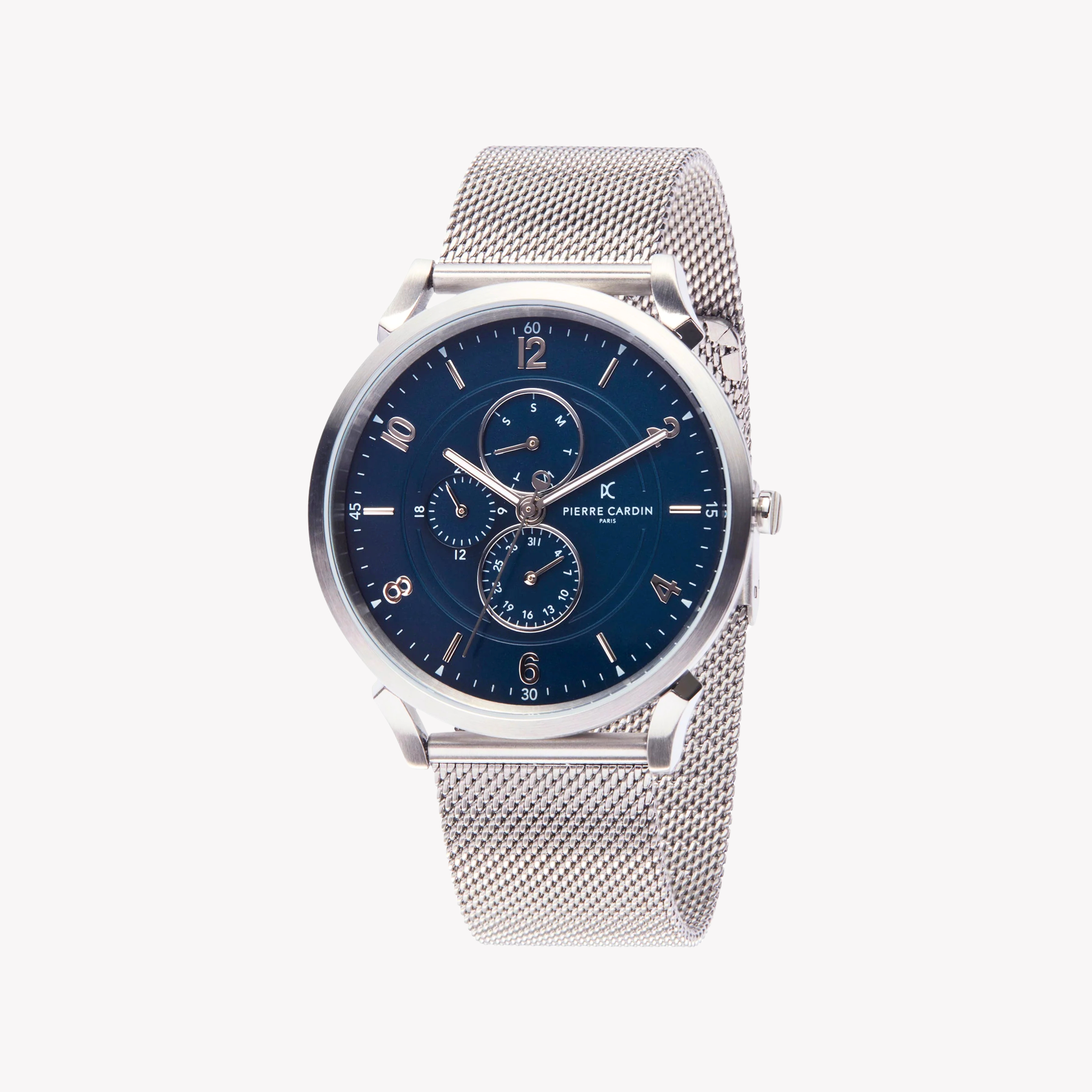 PIERRE CARDIN CPI.2028 STILVOLLE HERRENUHR – LUXUS-SILBERGEHÄUSE UND BLAUES ZIFFERBLATT