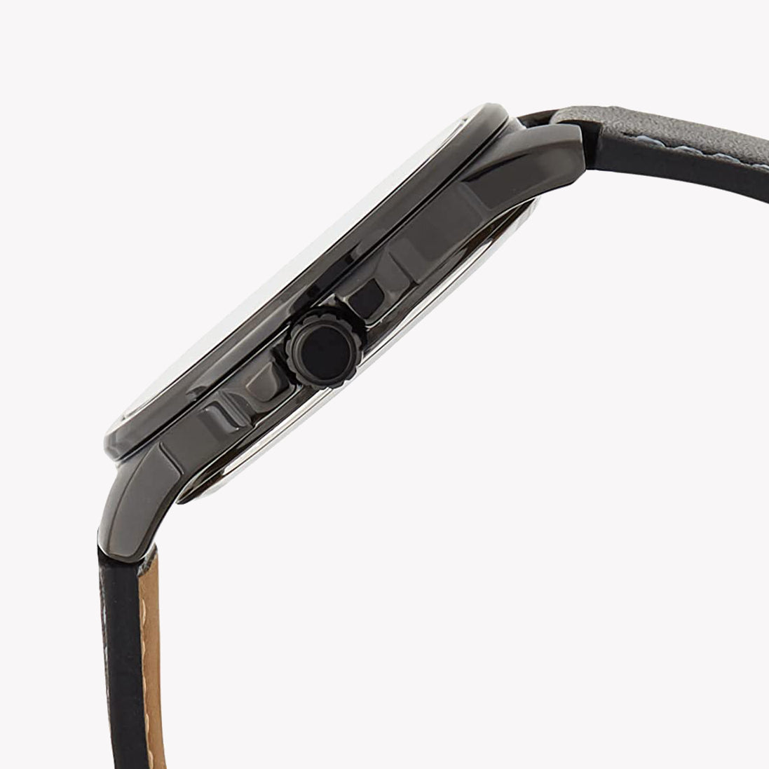 - Sportliches Design: Mit einem auffälligen schwarzen Lederarmband und einem faszinierenden Gehäuse aus schwarzem Edelstahl wurde diese Uhr so gestaltet, dass sie heraussticht und gleichzeitig jedes Outfit mühelos ergänzt.