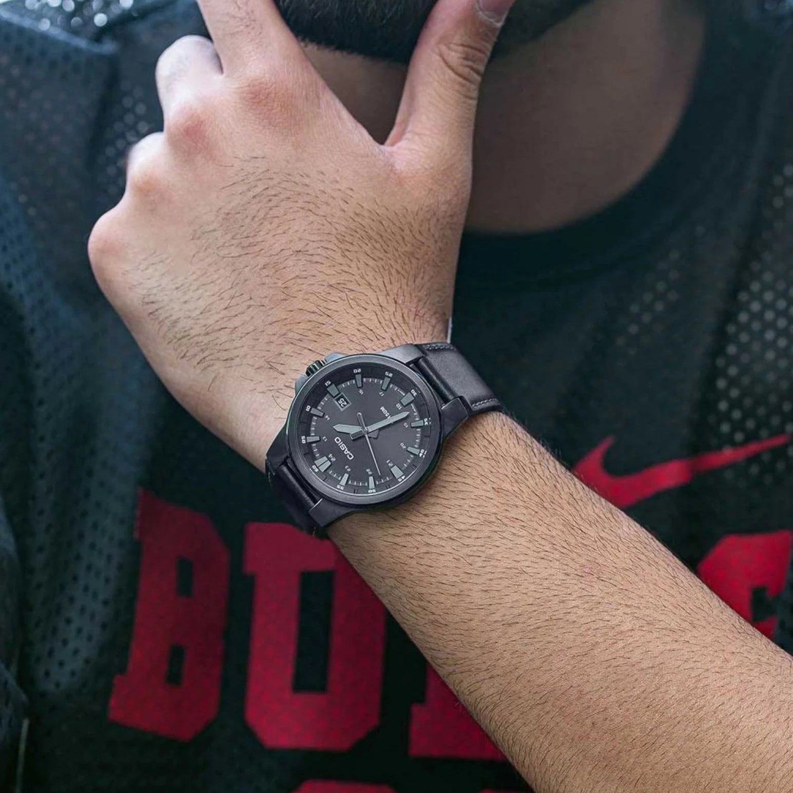 CASIO MTP-E173BL-1AVDF SPORTLICHE ELEGANZ – HERRENUHR AUS SCHWARZEM LEDER UND EDELSTAHL