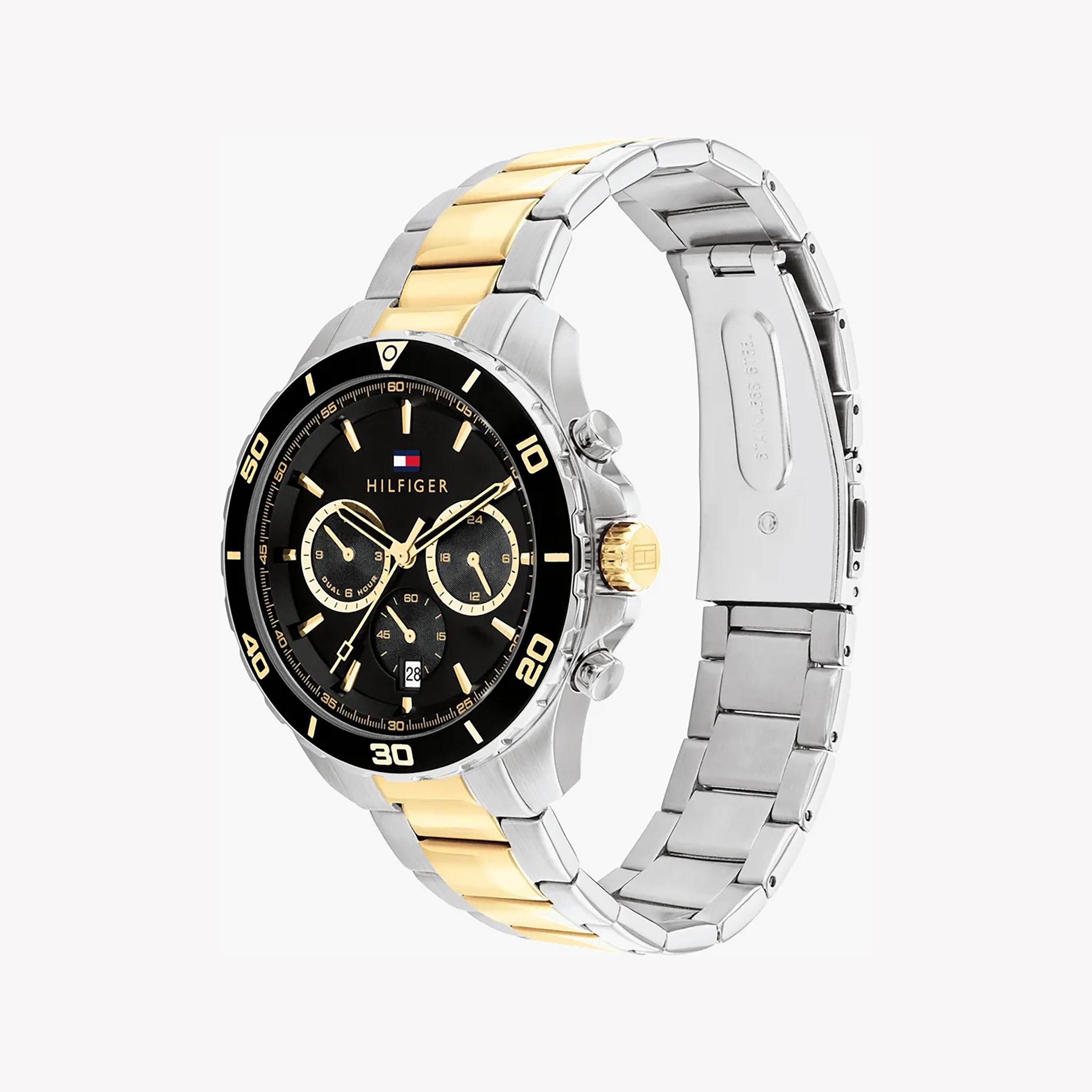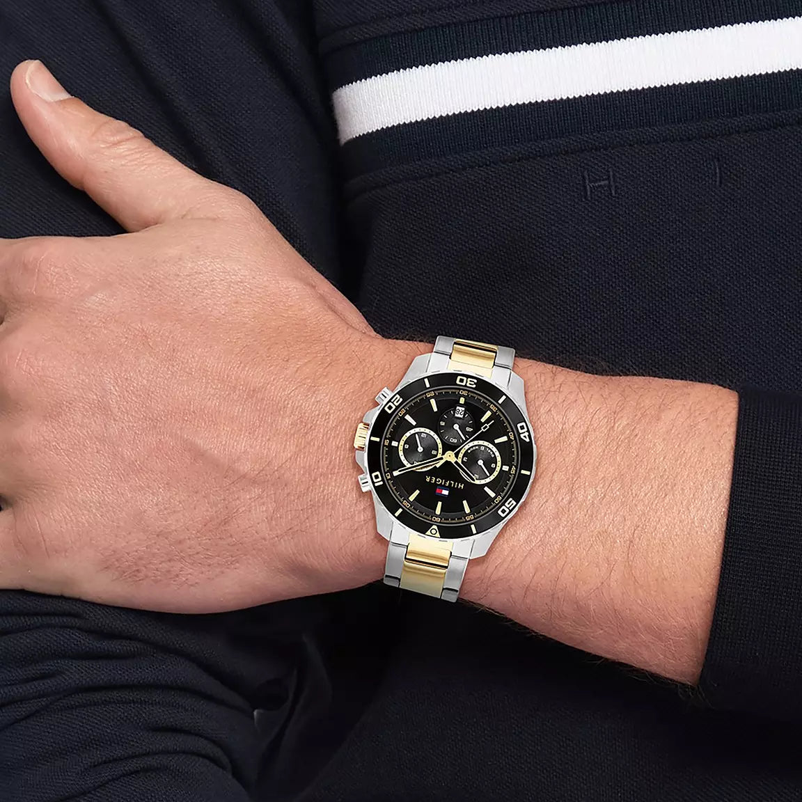 Tommy Hilfiger Men's Black Stainless Steel Watch, Silver & Gold Band | 1692184