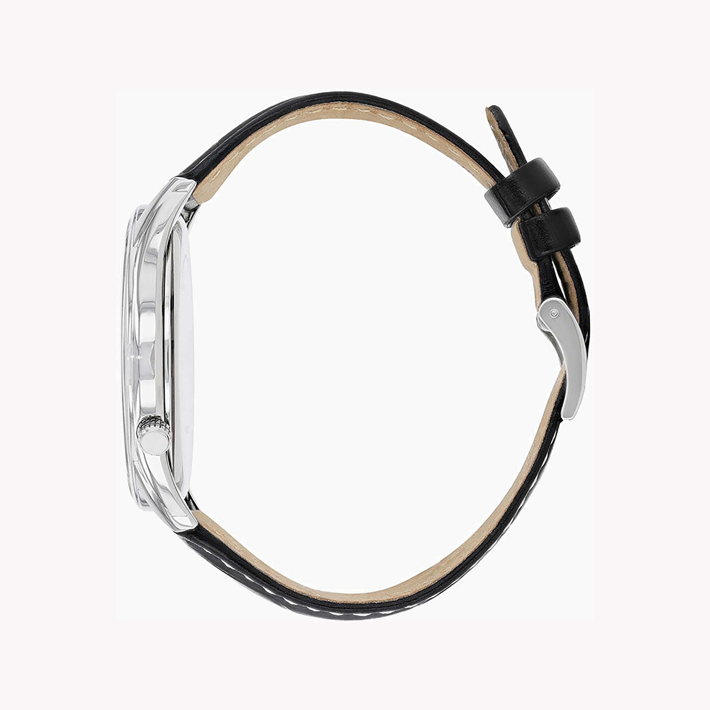 Explore the CITIZEN AO3030-24A men's watch, featuring a sleek stainless steel case, precision quartz movement, black calf leather band, and 5 ATM water resistance. Perfect for any occasion!